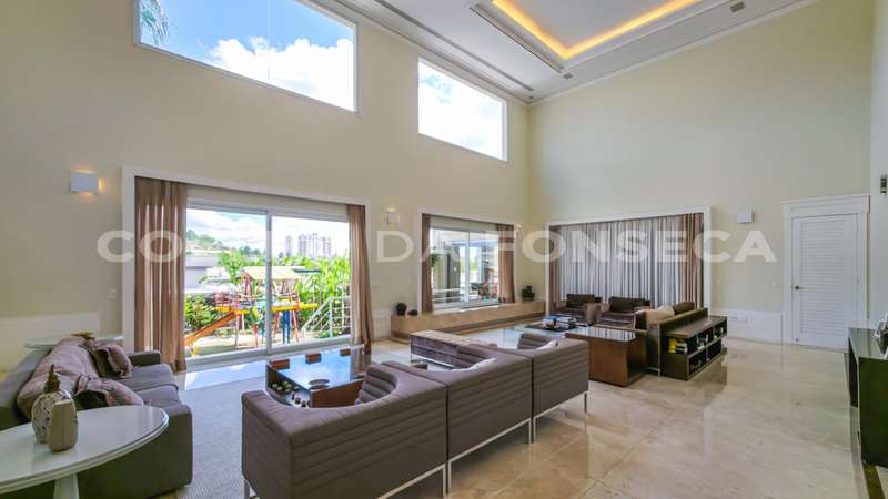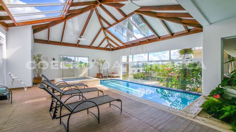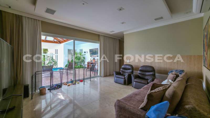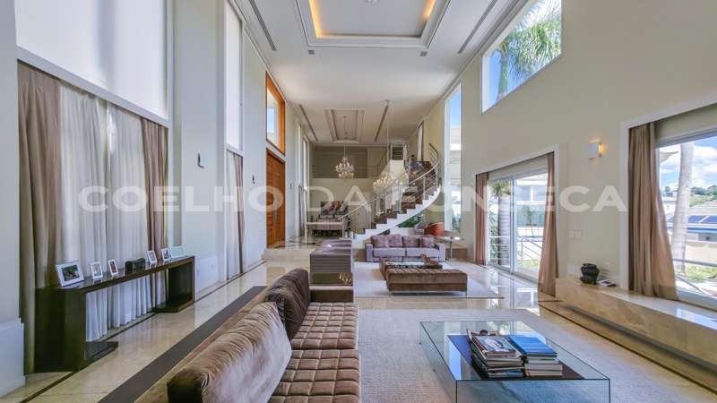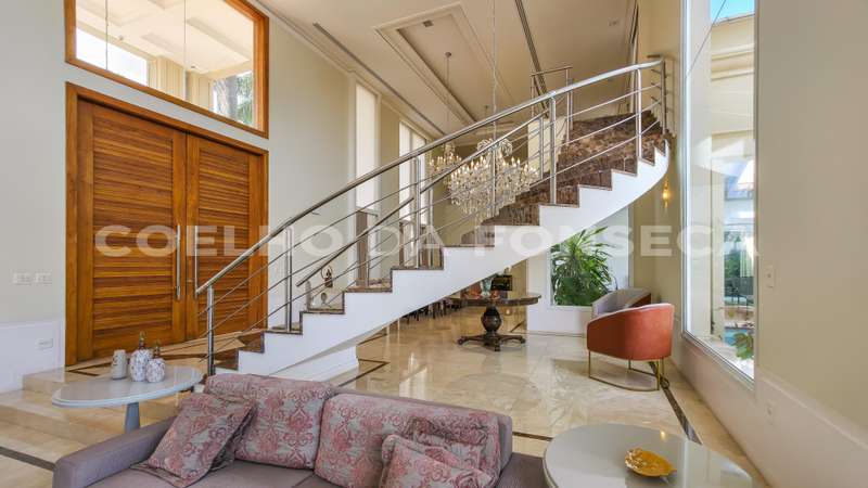 Casa no condomínio VILLA SOLAIA, com 1200m² área construída, 5 dormitório(s), 5 suíte(s), 9 vaga(s), 7 banheiro(s), piscina, esquina, sauna, ar condicionado, dep. de empregados, varanda, elevador, aquecedor solar, pé direito duplo.
