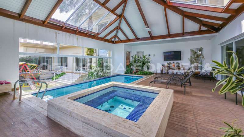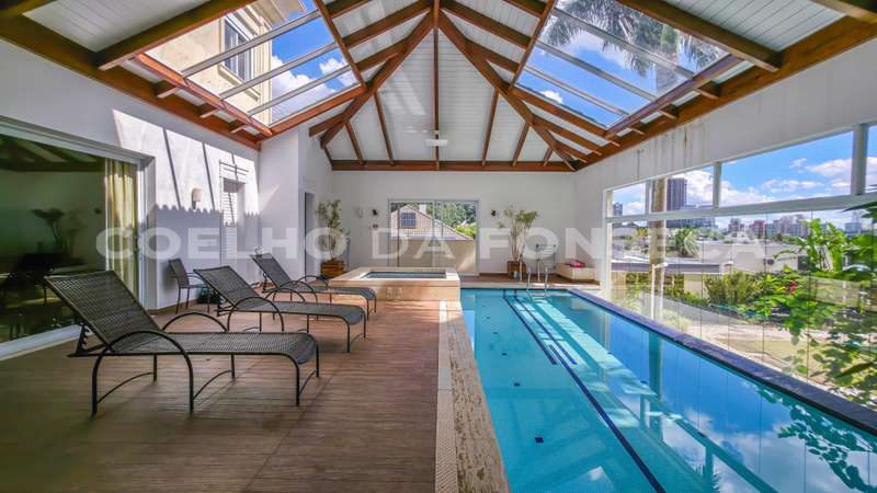 Belíssima Imóvel de esquina,Vila Solaia altíssimo padrão de construção e acabamento, 5 suítes sendo 1 suite no Térreo. Casa repleta de mármore, com aquecimento no piso, ar condicionado em todos os ambientes. Lareira, jacuzzi, sistema de captação de água da chuva, elevador, 2 escritórios, aspiração central, oficina, amplo living, brinquedoteca, piscina aquecida e com cobertura retrátil, salão de festa gourmet completo e garagem coberta para 15 carros.