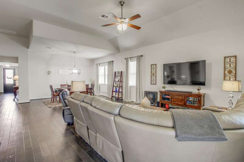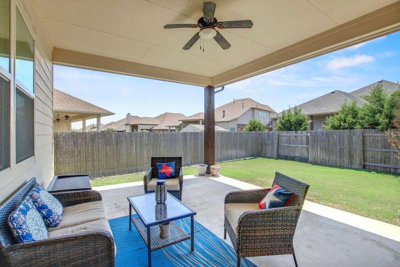 Welcome to 20312 Martin Ln — a 4-bedroom, 3.5-bath Scott Felder home backing to a private greenbelt on a quiet street in The Park at Blackhawk. Built in 2017, this well-maintained single-story features an open layout with high ceilings, a separate office, Jack-and-Jill bedrooms, and a private guest suite with full bath — perfect for flexible living. The kitchen offers ample prep space and storage, opening directly to the main living and dining areas. The primary suite is tucked in the back with dual vanities, walk-in closet, and great natural light. Enjoy community amenities through the HOA, energy savings from solar, and a fenced yard with room to entertain, garden, or play. Positioned minutes from Lake Pflugerville, Weiss High School, TX-130, and SH-45, this home offers easy access to schools, retail, and downtown Austin commutes.