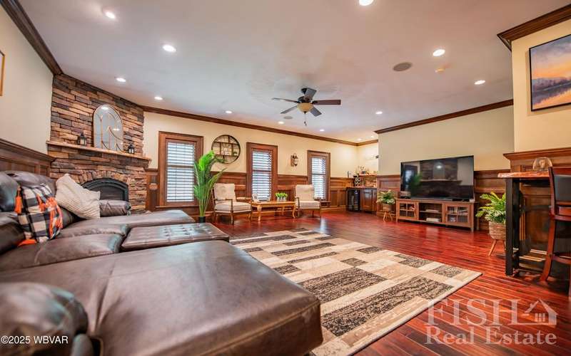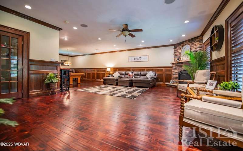 NOW SHOWINGS UNTIL 9/19/2025 - Awesome Home on 3.25 private & manicured acres w/ direct access to Rails-2-Trails. Offering a generous 5,000+ s/f layout, w/ 5 bedrooms, 3.5 baths & fantastic kitchen + great room! Enjoy entertaining inside or out on the sprawling multi-level patio w/ hot tub, the expanded fire pit + fenced-grounds, or the great room w/ stone fireplace, pool table, hardwood floors & cherry paneling! Additionally, you'll discover a chef-friendly kitchen w/ quartz counter tops, gas range, newer SS appliances, a completely finished in-law suite, primary bed/bath suite, large exercise space, 1st floor laundry, 3 car garage++. Owners have recently cleared & fenced-in lg. area of the property for future pool (all to code). Hi-Eff. Natural Gas heat + Central AC. Public water+sewer
