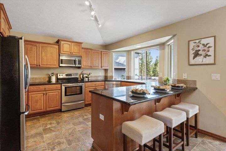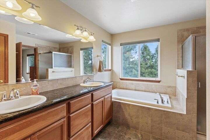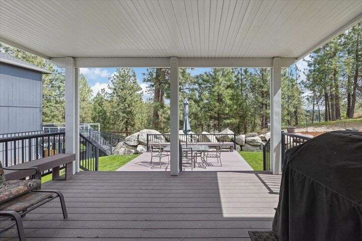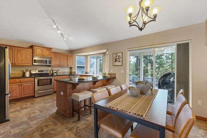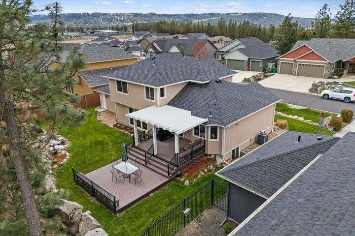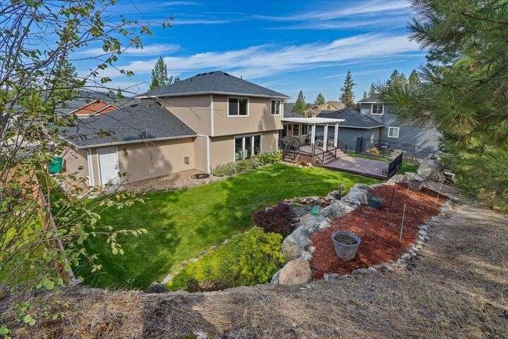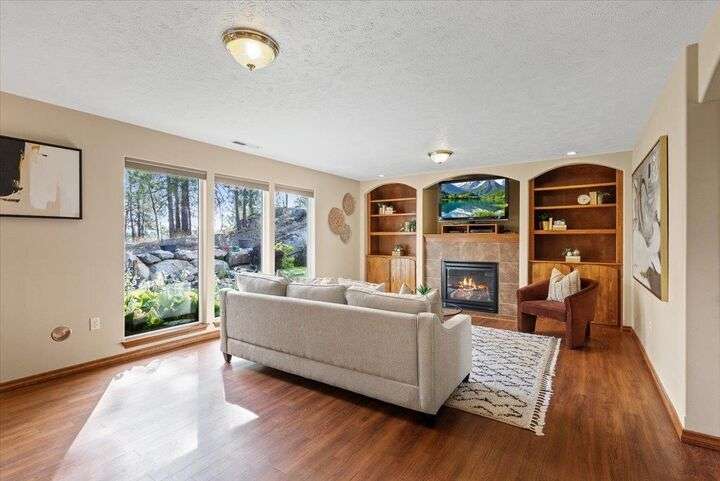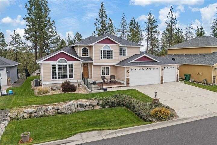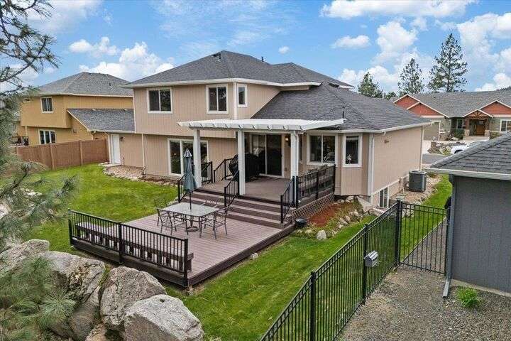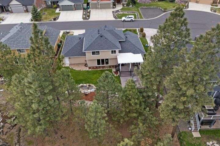 Your chance to own an amazing home in this gated development. Nestled on a quiet cul-de-sac, this property features a terraced backyard that includes a natural area. Enjoy outdoor living on the deck with a pergola, the water feature, and peaceful views. Inside, the spacious, multi-level layout includes 3 bedrooms together upstairs, including the primary suite with a walk-in closet, soaking tub, and shower. The huge kitchen boasts granite countertops, stainless steel appliances, a newer Bosch dishwasher, ample counter space, a pantry, and vaulted ceilings. The lower level includes a cozy family room with custom wood built-ins and a gas fireplace, plus a laundry room and half bath. Durable vinyl plank flooring flows throughout the home. The basement features a versatile finished space—ideal as a second family room or a spacious 4th bedroom. Nice storage in the mechanical room. 3-car garage with tandem space with a workshop area. Just minutes from highly rates Mead schools, shopping & restaurants.