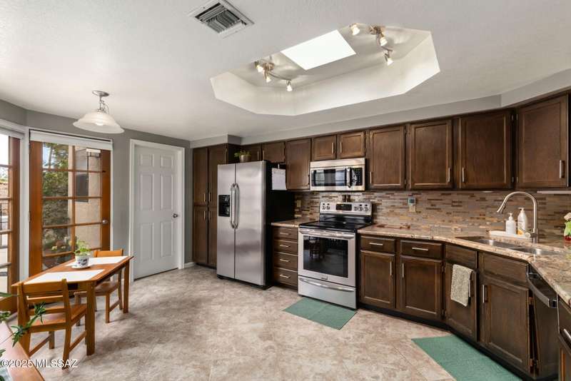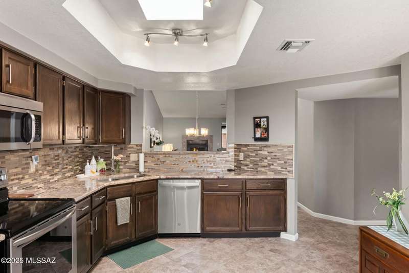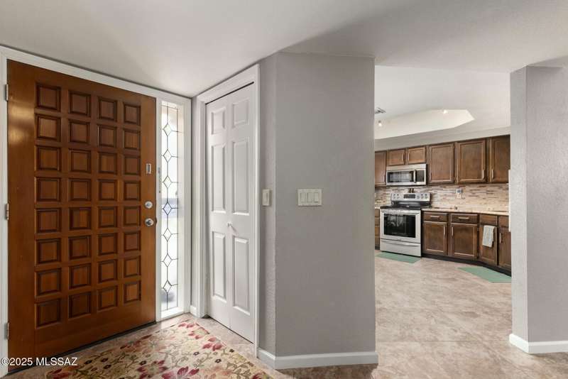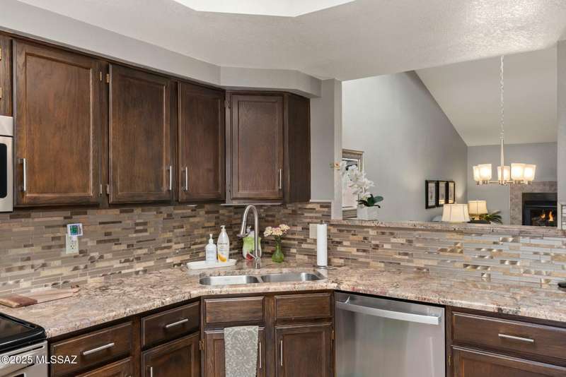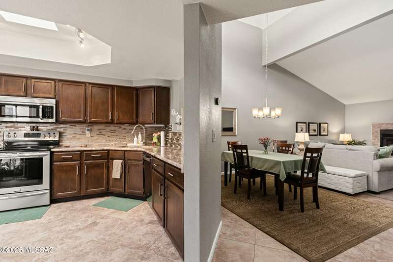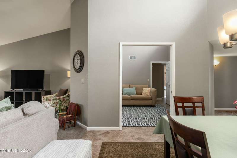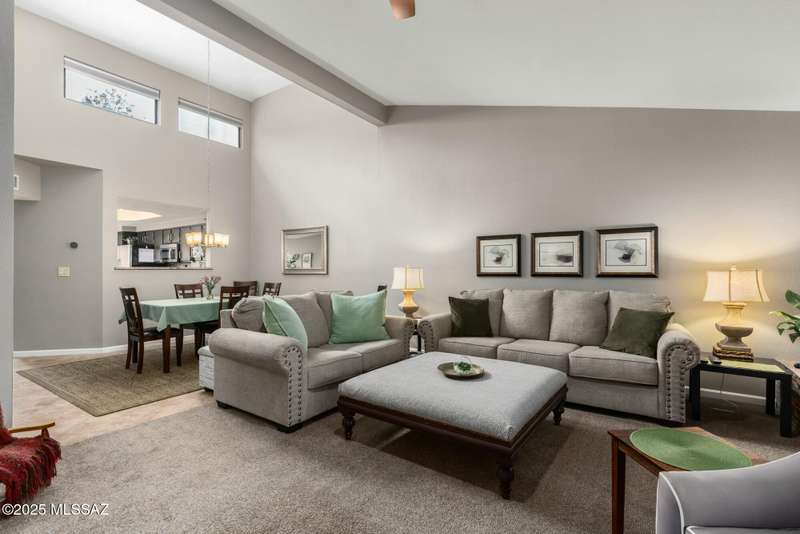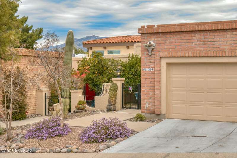 Nestled in the heart of Oro Valley, 10100 N Spyglass Place is a charming single-story townhouse offering 3 bedrooms, 2 bathrooms, and a spacious 1,812 square feet of living space.The brick home features large rooms with vaulted ceilings, creating a bright & open floor plan. The 3rd bedroom and/or den/office seamlessly integrates into the great room, providing flexibility for work or leisure. The east-facing backyard offers stunning views of Pusch Ridge, perfect for morning coffee or evening relaxation.Residents can enjoy the community pool and well-maintained grounds within the development. The property is within walking distance to the Oro Valley Country Club, ideal for golf enthusiasts & social gatherings.Experience the blend of comfort, convenience, & picturesque views.