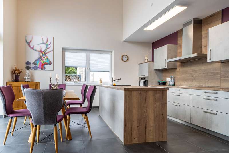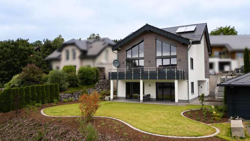 This modern detached house built in 2020 offers you and your family a well thought-out living concept with an exceptional room layout and numerous furnishing highlights on around 201.98 m² of living space. The property is located on a flat plot of approx. 629 m² in a well-kept and quiet residential area. The house has more than eight rooms in total, including five spacious bedrooms, three stylish bathrooms and two separate guest WCs - perfect for the everyday life of a large family or for prestigious living requirements. The flexible floor plan opens up a wide range of possibilities for the individual design of living and working areas. A special highlight is the separately partitioned granny apartment, which is ideal for use as a guest, work or wellness area - or as an attractive investment for renting out. As soon as you enter the house, you will be impressed by the exceptionally high doors, which lend the interior an elegant, spacious atmosphere. High-quality materials and stylish design elements characterize the overall appearance of the property. The well-kept outdoor area offers numerous possibilities for individual garden design. Whether sunny terrace areas, play areas for children or cozy retreats in the greenery - everyone will find their personal favourite spot here. This exclusive detached house is offered fully furnished and ready to move into immediately - ideal for anyone who wants to move into a modern, high-quality home without a great deal of effort. If you are looking for a prestigious and family-friendly home with intelligent room planning, exclusive fittings, state-of-the-art technology and high-quality materials, this detached house combines all of these qualities. It offers a living atmosphere that meets the highest standards. We will be happy to provide you with further information or arrange a personal viewing appointment. See the benefits of this special property for yourself and discover your new home.
