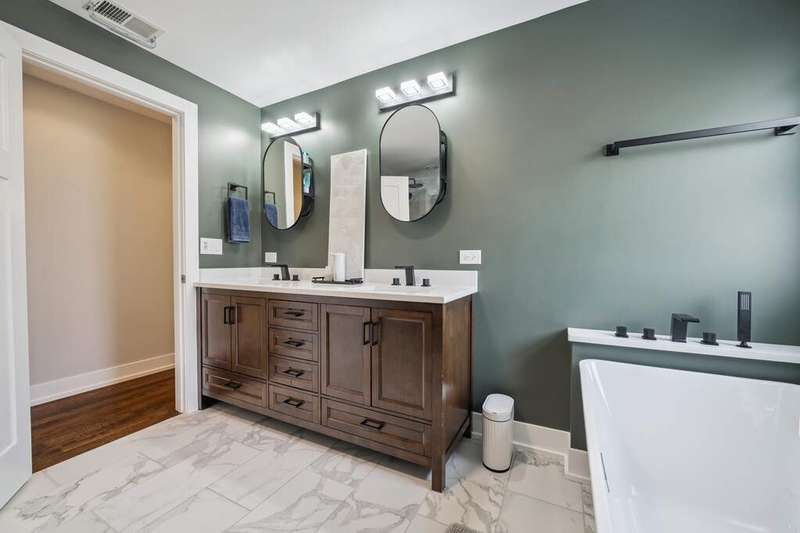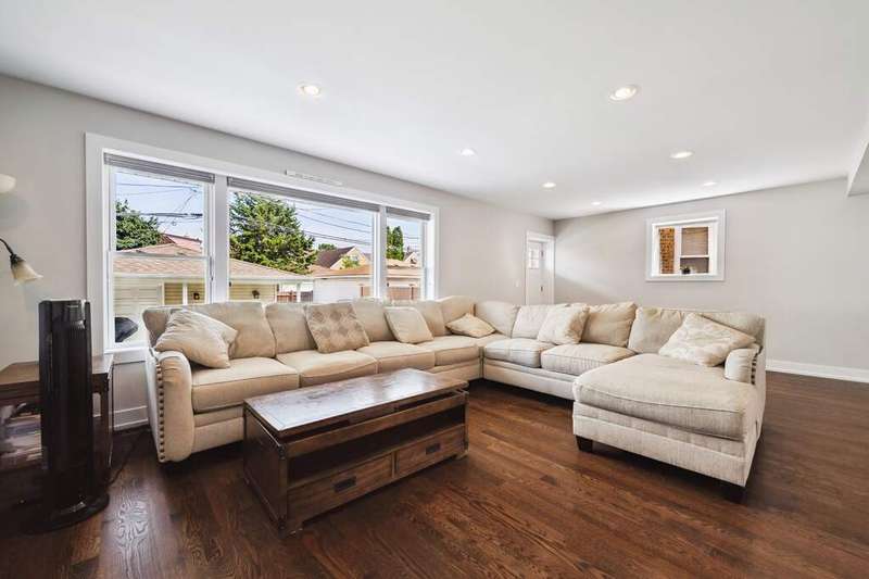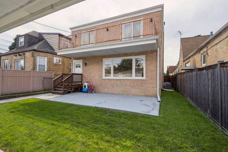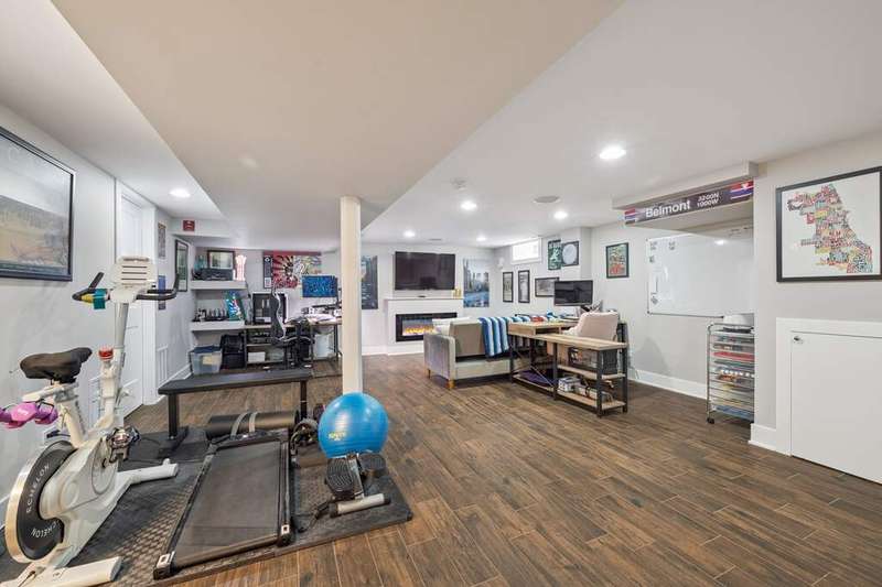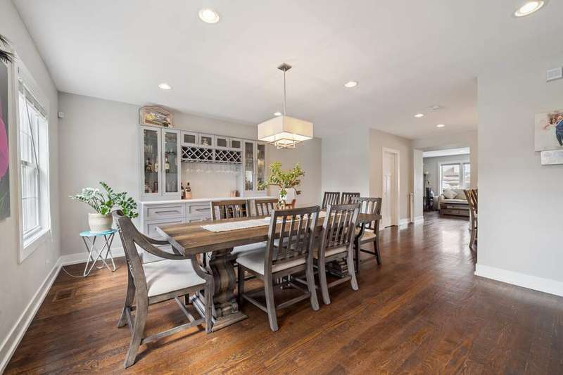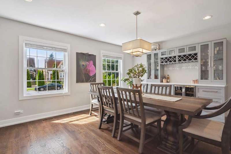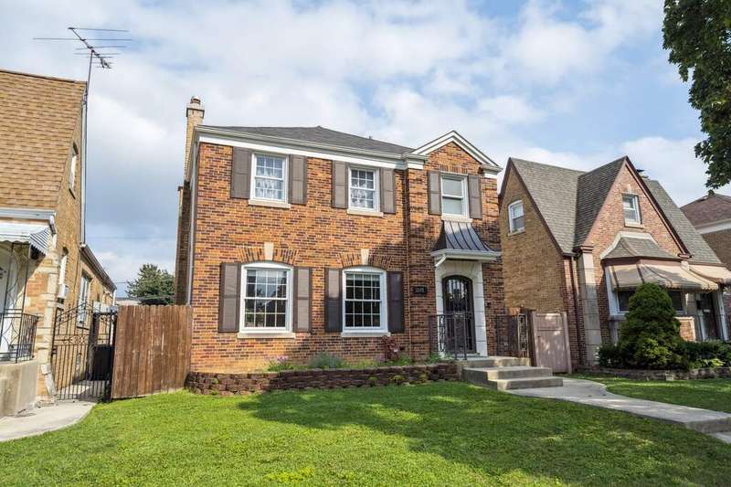 This four-bedroom, three-and-a-half-bath oversized Georgian home is a true gem. Situated on a serene, tree-lined street in the Dunning neighborhood, this home was completely renovated from the studs out. The moment you arrive, its remarkable curb appeal, framed by mature oak trees, draws you in. Step inside to discover a fantastic, updated space with transitional finishes and modern, clean lines. The elegant dining room features a built-in hutch and plenty of space for a table of ten or more. The room flows seamlessly into a stunning kitchen, which boasts white shaker cabinets, quartz countertops with a waterfall edge, stainless steel appliances, and a beautiful Ann Sacks tile backsplash. The back half of the main floor features an enormous living room with a cozy fireplace and leads out to the backyard and two-car garage. Upstairs, the second-floor sleeping quarters offer four generous bedrooms, two full baths and laundry. The primary bathroom is a spa-like retreat straight out of a magazine, complete with double sinks, a massive soaking tub, and a large, separate shower. The finished lower level includes a third full bath and is currently used as a workout space, office, and media room. You'll find peace of mind knowing the home has been meticulously maintained, including a complete 2017 renovation that included new electric, plumbing, windows, roof, kitchen, baths, drainage tile, sump pump, ejector pump, and refinished hardwood floors. Recent improvements include a new wine fridge, chest freezer, water heater, furnace, AC, and humidifier, sump pump and battery. Welcome home!