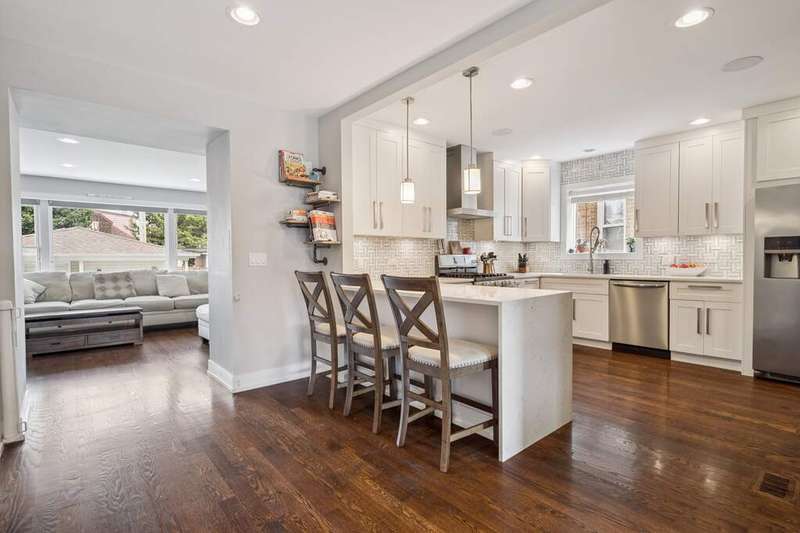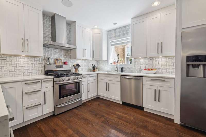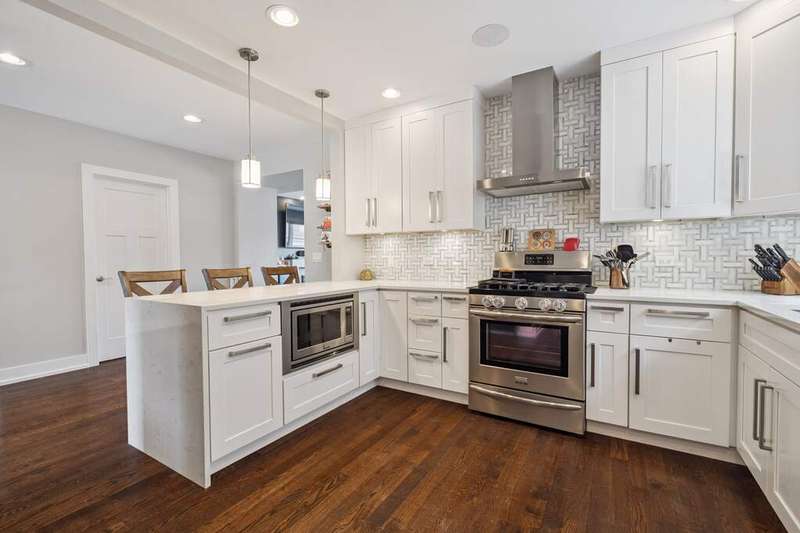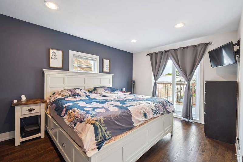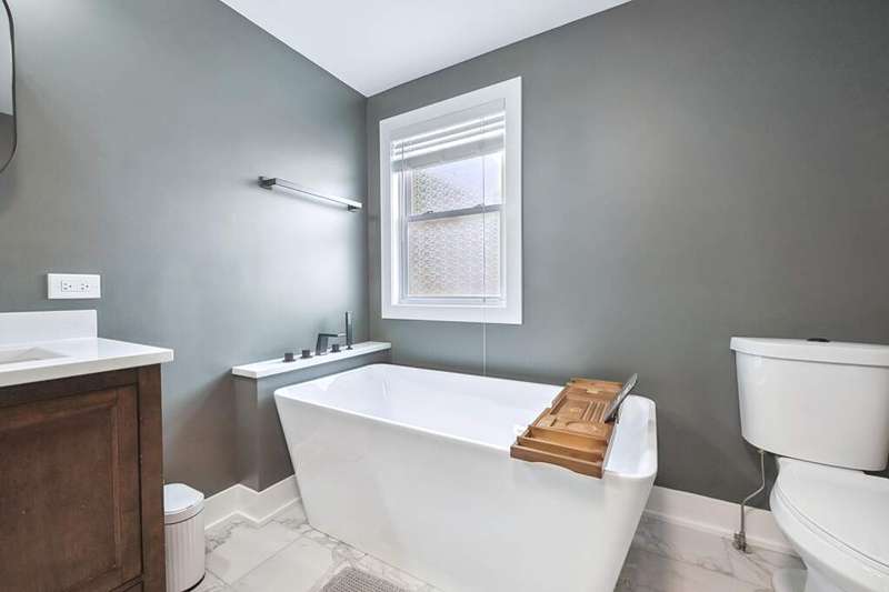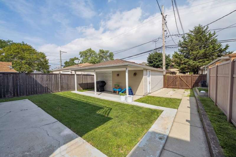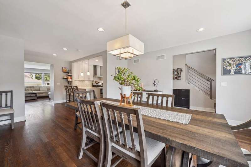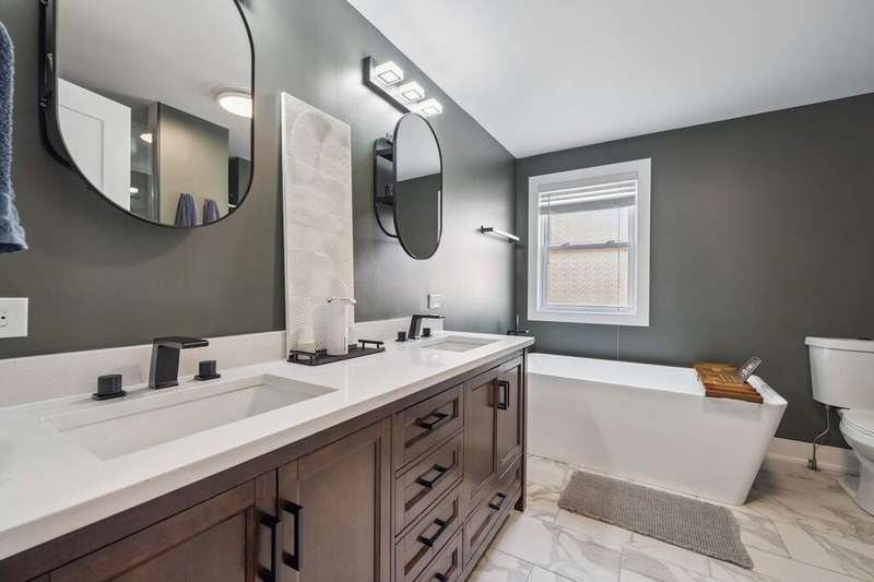 This four-bedroom, three-and-a-half-bath oversized Georgian home is a true gem. Situated on a serene, tree-lined street in the Dunning neighborhood, this home was completely renovated from the studs out. The moment you arrive, its remarkable curb appeal, framed by mature oak trees, draws you in. Step inside to discover a fantastic, updated space with transitional finishes and modern, clean lines. The elegant dining room features a built-in hutch and plenty of space for a table of ten or more. The room flows seamlessly into a stunning kitchen, which boasts white shaker cabinets, quartz countertops with a waterfall edge, stainless steel appliances, and a beautiful Ann Sacks tile backsplash. The back half of the main floor features an enormous living room with a cozy fireplace and leads out to the backyard and two-car garage. Upstairs, the second-floor sleeping quarters offer four generous bedrooms, two full baths and laundry. The primary bathroom is a spa-like retreat straight out of a magazine, complete with double sinks, a massive soaking tub, and a large, separate shower. The finished lower level includes a third full bath and is currently used as a workout space, office, and media room. You'll find peace of mind knowing the home has been meticulously maintained, including a complete 2017 renovation that included new electric, plumbing, windows, roof, kitchen, baths, drainage tile, sump pump, ejector pump, and refinished hardwood floors. Recent improvements include a new wine fridge, chest freezer, water heater, furnace, AC, and humidifier, sump pump and battery. Welcome home!