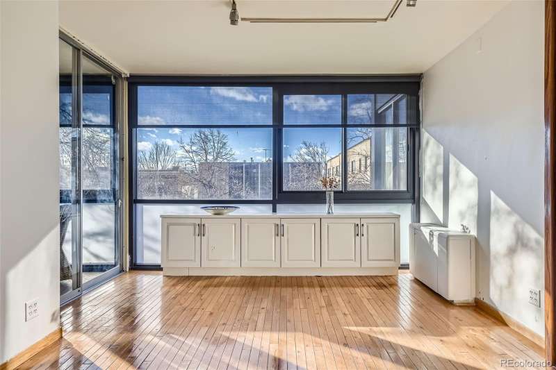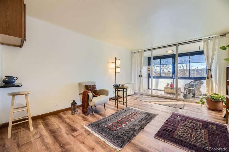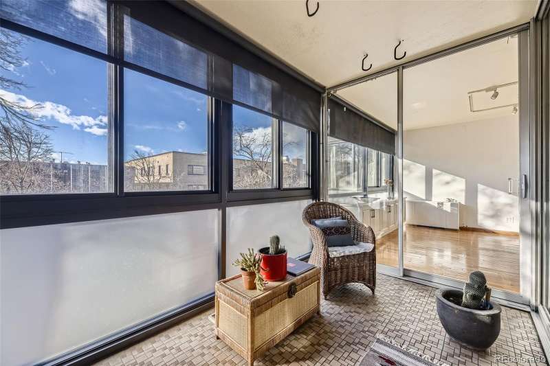 New price on this updated west facing condo in the heart of central Denver! This charming 1-bedroom, 1-bathroom abode offers a light and bright floor plan with a gorgeous sunroom and just a peek of mountain views. The kitchen and bathroom have been tastefully updated so the home is move-in ready. The kitchen features stainless appliances, granite countertops and plenty of storage. New windows have been paid floor and owner installed elegant solar shades, ensuring comfort throughout the seasons. Centrally located, this home offers easy access to Denver's vibrant Capitol Hill area, cultural attractions, dining hotspots, and Cheeseman Park. Whether you're a first-time buyer, looking to downsize, or seeking an investment, this condo provides an economical option for urban living. Unit includes an off street deeded parking space and small storage area. Common area amenities include bike room, small gym, sauna, and laundry facilities. HOA fee includes heat/ac, water, sewer, trash, wifi.