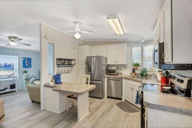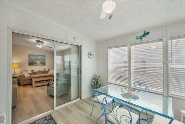 Beautiful and spacious 2/2, double wide home in sought after Trailer Estates. Trailer Estates is a 55+ Water Front Community with so many amenities and you own the land. No rent. This home has all newer stainless appliances, newer flooring, newer bedroom carpets and newer furniture, high ceilings, indoor laundry and comes turnkey furnished. The Kitchen consists of new Stainless appliances and a breakfast bar which is open to the dining room and living room. Great for dinner gatherings. The spacious living room has sliding doors to the Florida room. The Florida room is wonderful for entertaining, games, and playing cards. The master bedroom has an ensuite bathroom with walk in shower. This home also consists of a guest bedroom and full guest bathroom with a tub and shower. There is a shed out back with a workshop, and a sitting area to enjoy the yard. There is also a sitting area under the carport out front to enjoy the outdoors in the shade. The one car carport and stone driveway allows for plenty of parking. This home has not had any hurricane, storm damage. Trailer Estates has many amenities. A very large pool, spa, woodshop, park on the water, marina, kayak launch, storage, fitness center, their own post office, club house, pickle ball, a storage lot and so much more, plus many activities. Close to shopping, restaurants, SRQ airport and beaches.