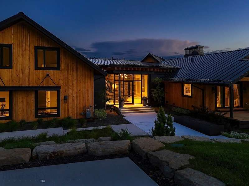 This exceptional 36.375-acre estate blends modern luxury with Montana's breathtaking landscape, just over 4 miles from downtown Bozeman. The newly remodeled 9,787 sq. ft. residence, originally built in 1989 and transformed in 2022 by NVS Architects and Villa Homes, features seven bedrooms, four and a half bathrooms, and sophisticated, thoughtful design throughout. Expansive living spaces include a state-of-the-art kitchen, theater room, gym, bonus room, dedicated dog room with outdoor access and a stunning outdoor area with a covered patio, outdoor kitchen, firepit, and astroturf dog run. The main level is anchored by a vaulted great room with expansive windows framing mountain views, a gas fireplace, and a Restoration Hardware chandelier. The kitchen is a showpiece, outfitted with high-end BlueStar appliances, a large island, and a hidden prep kitchen with Miele and True appliances-perfect for seamless entertaining. The stunning main level primary suite includes spa bath, dual walk-in closets and a private office with covered patio. The lower level offers four bedrooms, two bathrooms, a large family room with a gas fireplace, and walk-out access to a private patio and playground, creating an ideal space for guests or multigenerational living. The upper level of the home features a large media room with wet bar, two bedrooms, 3/4 bath and bonus room. Designed for year-round enjoyment, the outdoor areas seamlessly combine beauty and function. A warm mahogany deck provides a front-row seat to the mountains, while radiant heat in the surrounding tile ensures snow-free patios and walkways in winter. A 1.25-acre pond, greenhouse, heated driveways, a whole-home generator, and three gated entries with paved driveways enhance comfort and security. The 10,400 sq. ft. shop and showroom-fully redesigned in 2022-is a dream space for collectors, hobbyists, or business use. The shop features five car lifts, two gas heaters, and a dedicated workroom with a powder bath. The adjoining showroom offers an epoxy-finished floor, three stylish offices, a kitchenette, and an additional powder bath-ideal for professional operations, meetings, or displaying prized collections. With direct access to National Forest and the M Trailhead, this rare property offers the ultimate Montana lifestyle-private, convenient, and built for both adventure and elegance.