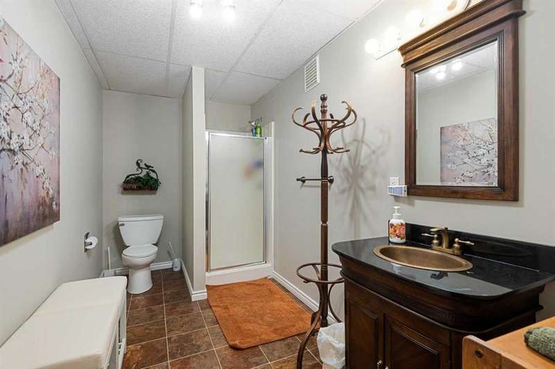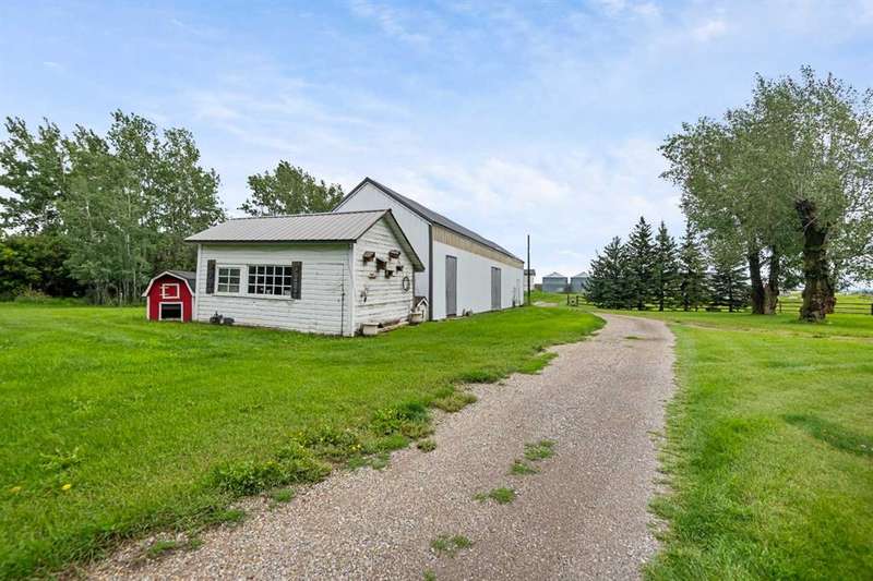 43 acres in the Madden area! A very easy commute to the city or escape to the mountains! This 1997 model modular-prefab home is in mint shape and includes a finished walk-out basement to large patio. The main floor is nice setup for families or couples, great kitchen with a large island and breakfast nook. A formal dining room is great for family functions with French doors to a covered deck (perfect for morning coffee)! The sunroom can double as a quiet sitting room/office, leading to the Primary bedroom w/ 4pcEnsuite. Two more bedrooms w/ separate 4 pce bath is convenient exit off the living room. (there is a RI door way from the master to the hallway to these bedrms but was never installed, future if you have toddler's). The large living room a gorgeous stone faced gas fireplace for those cooler mornings in the spring and fall, and you'll love the view out to the west from the 50 ft balcony! The basement is fully finished with large family room, 1 huge bedroom and a second that doubles as an office. Just off the family room is a 3 pce bath w/ shower, the mechanical room with HE F/A furnace with A/C, boiler for the slab heated floor and main floor laundry/Mudroom, the water pressure tank and water conditioner/softner & distiller. In the storage room off the lower laundry room is a transfer switch if you ever need to connect your generator. If your hobby is wine making this might be the right for you. The triple garage is finished and heated. There is a shed for all your garden needs, plus a big shed for wood working or ?/storage. There's also a shedrow for storing boats trailers, lawn equipment etc. If you have horse's, or other stock the pasture offers a seasonal creek, dug-out that used to was used to stock fish for the grand kids. The balance of the land is in crop and is rented out for 2025. Reasonably priced for those looking for something more then a house on a postage stamp!