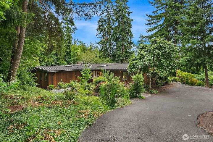 Discover an exceptional estate that spans a remarkable 39,377 sf lot, offering a rare street-to-street layout. This charming rambler perfectly blends tranquility of nature w/ the conveniences of city living. Just minutes from downtown Bellevue, MSFT, & renowned schools, this estate is ideal for those who value accessibility. Unwind on your spacious deck in lush gardens & vibrant wildlife. Perched just above Glendale Country Club, this private estate provides seamless access to everything you need. Embrace the estate-quality surroundings, featuring an open 1955 modern classic design. Abundant natural light floods in through walls of windows, skylights, & French doors. Expand for stunning city or mountain views and create your dream retreat.