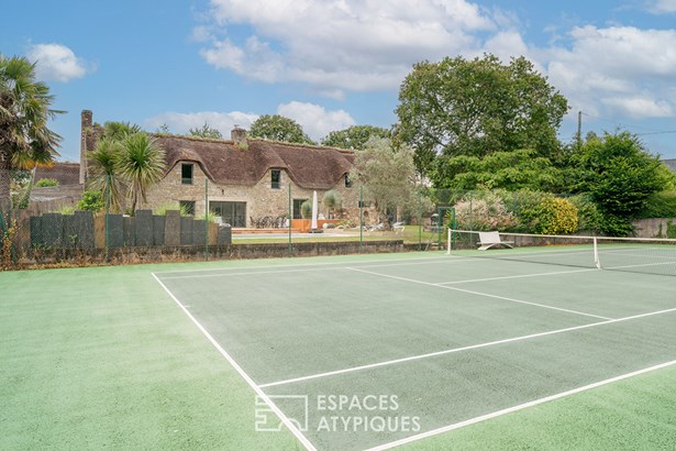 Outside, the amenities match the overall quality. The south-facing terrace hosts summer meals overlooking the landscaped garden. A wellness area has been thoughtfully arranged: heated pool, integrated spa, relaxation spaces: Further on, a private tennis court and a petanque court complete this rare ensemble. The garden, dotted with exotic plants and local species, invites you to disconnect. The amenities (schools, shops) of the village of Grand-Champ are accessible in just a few minutes, as are Vannes and the Gulf of Morbihan.