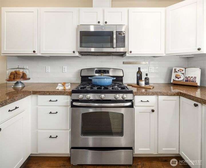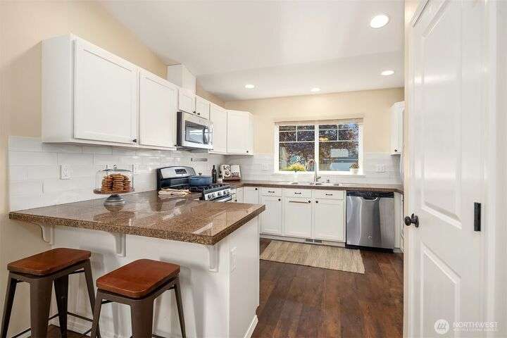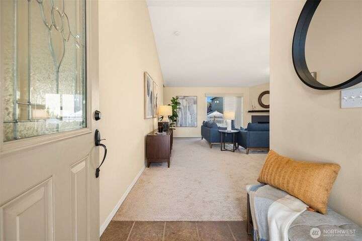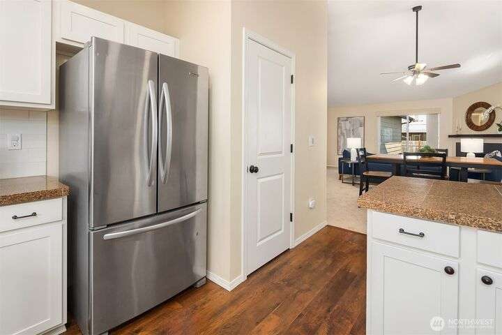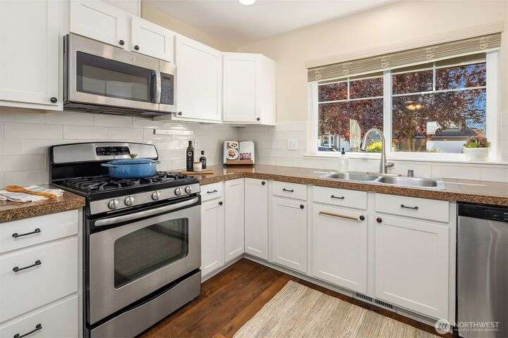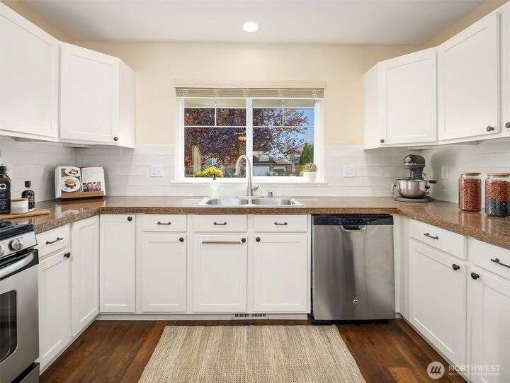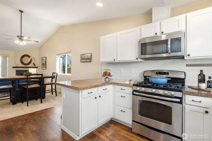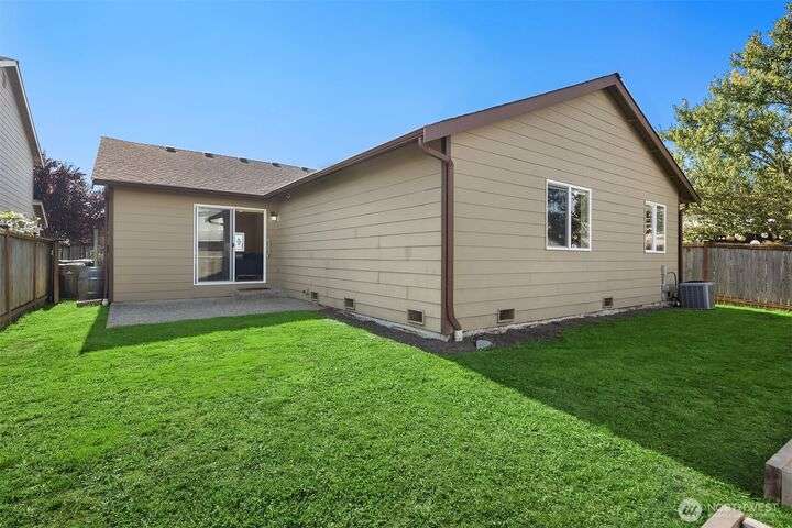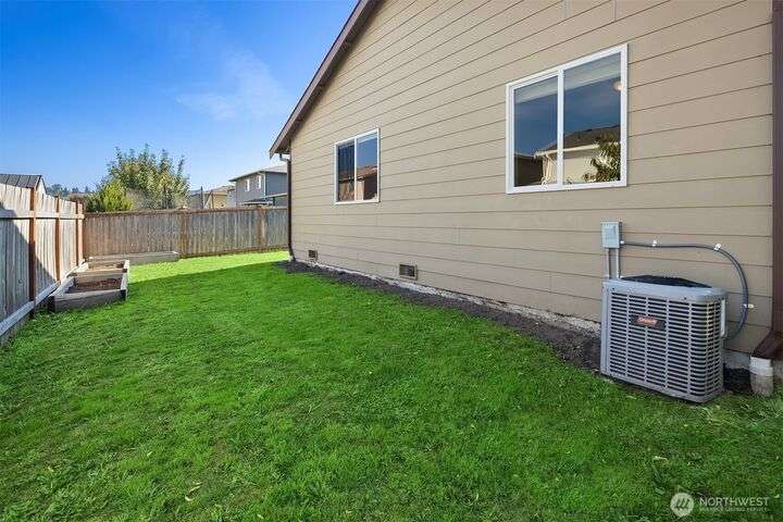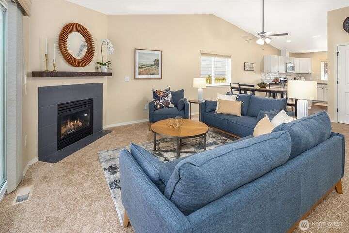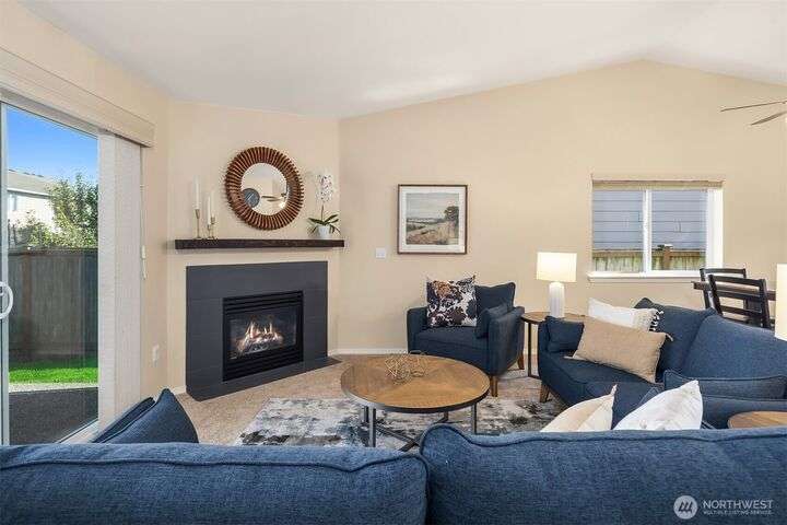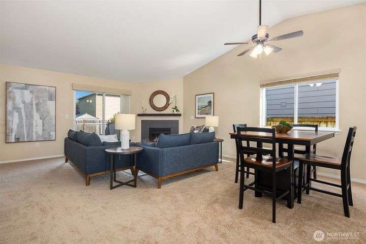 Welcome to this picture-perfect rambler that shines w/pride of ownership! Step inside to an airy open layout where vaulted dining & living rooms fill with natural light, anchored by a cozy gas fireplace. The kitchen features timeless white cabinetry, stainless appliances, & warm engineered floors- the perfect gathering place to entertain. All new carpet adds comfort & central A/C keeps you cool year-round. The primary suite offers a soaking tub, dual sinks & walk-in closet. Outside, a sunny, fully fenced backyard invites play, gardening or relaxation on the patio. Nestled on a quiet cul-de-sac w/a nearby park, exceptional schools, & beautifully kept homes. Pre-inspected, only 11 years young, this home blends comfort, charm, & peace of mind.