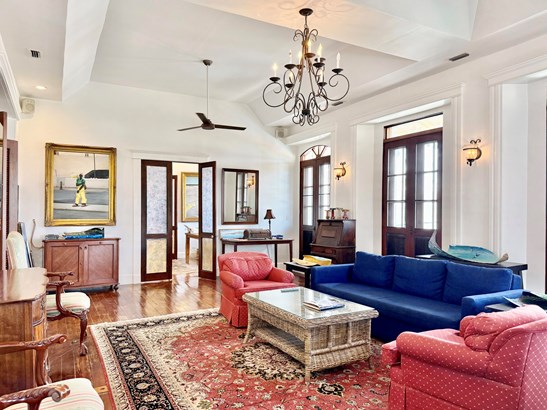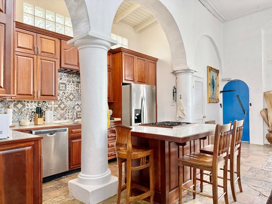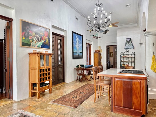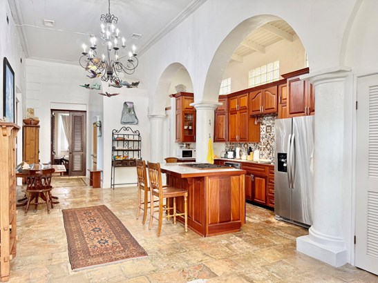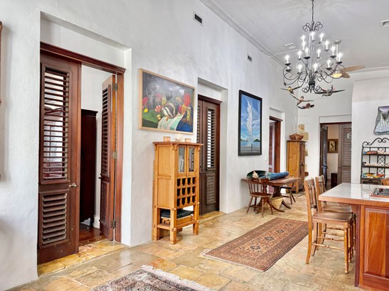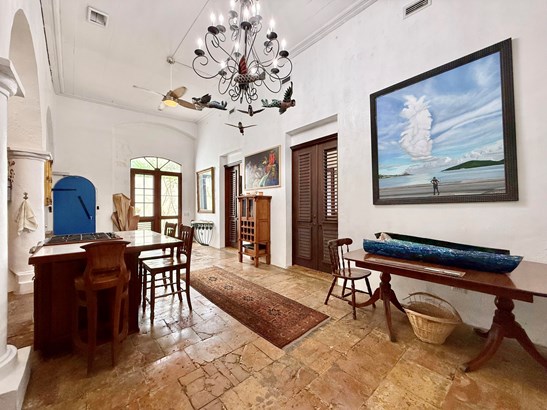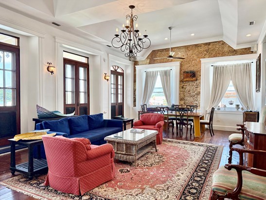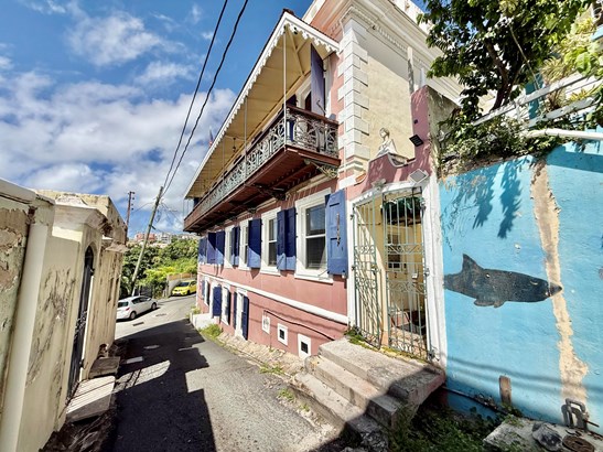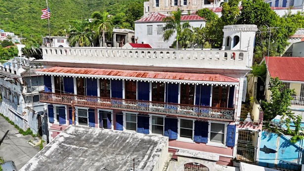 Experience a rare opportunity to own a distinguished piece of Virgin Islands heritage. Originally built in the 1700s, with a recorded deed dating to 1804, this architectural masterpiece seamlessly blends historic grandeur with modern sophistication. Soaring vaulted ceilings, graceful archways, mahogany floors, and intricate ironwork evoke timeless elegance, while solar power, air conditioning, and Starlink internet ensure contemporary comfort. Main residence features three bedrooms, two baths, an entertainment lounge, and a private rooftop terrace. Four beautifully appointed rental suites offer income potential. Perfectly situated in Charlotte Amalie near fine dining, boutiques, and ferries, this storied estate once owned by notable figures--embodies the enduring legacy of island luxury.