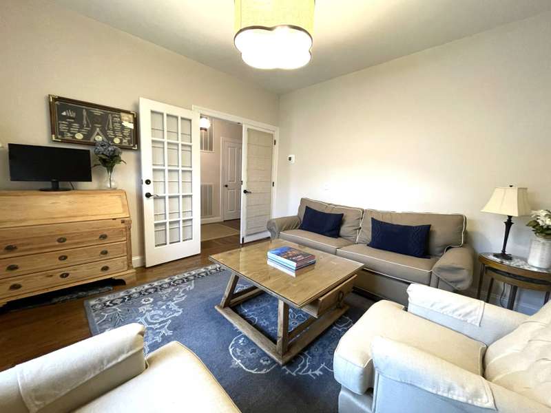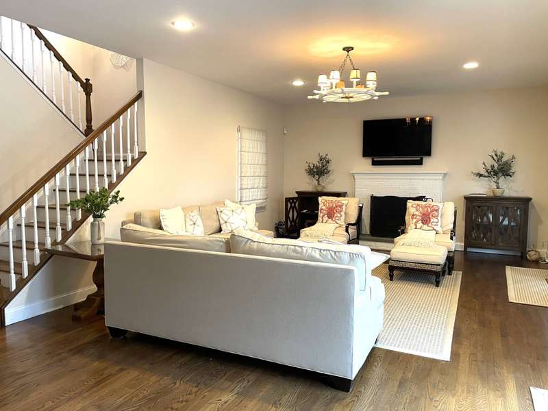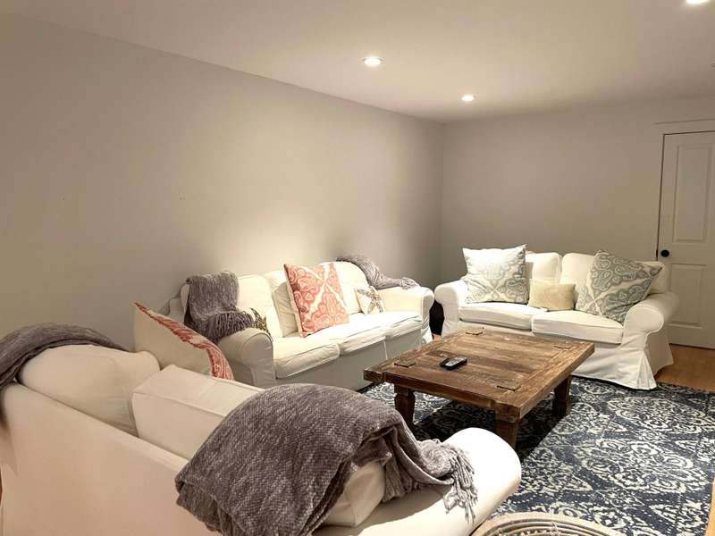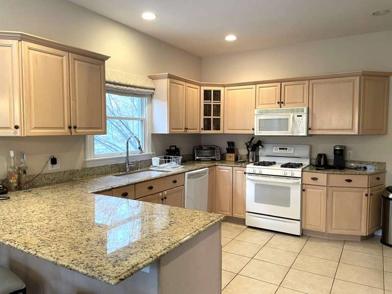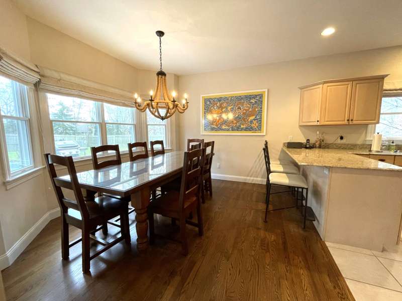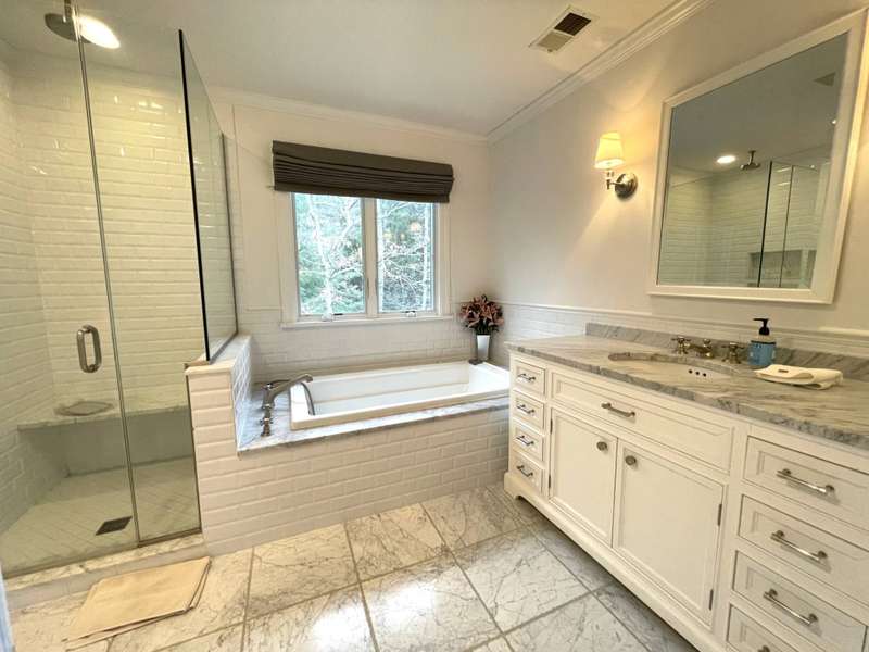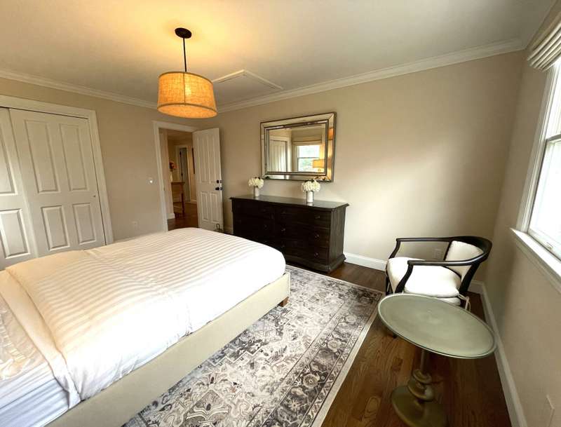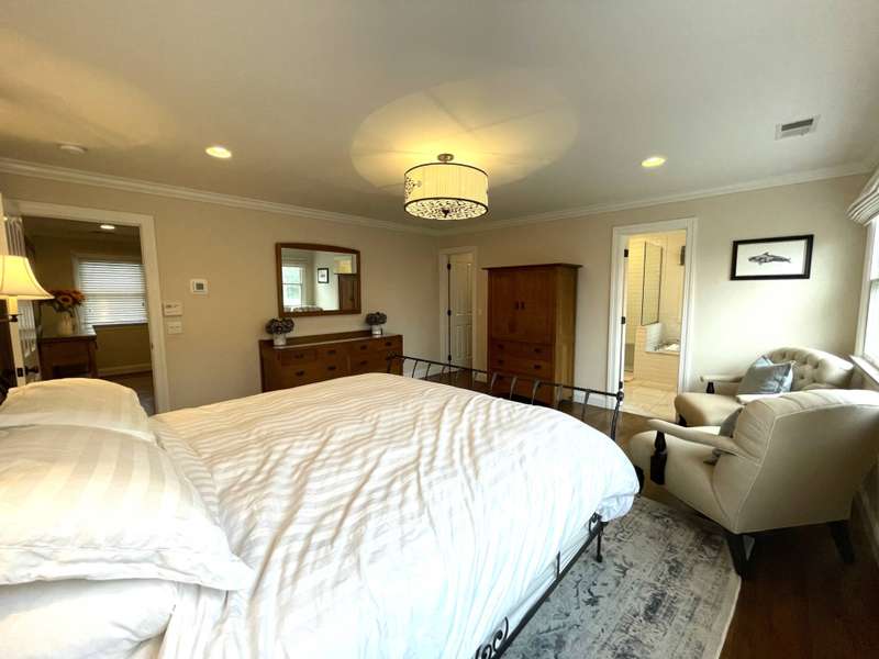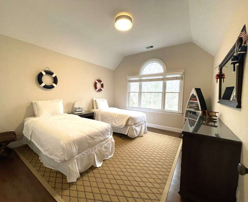 Rental Registration # 23-0,473 - Recently completed renovations provide enhanced brightness with the addition of a wall of French doors opening to the backyard and allowing sunlight to flood the communal living space. The newly completed screened-in porch is perfect for summer dinner parties and leads to the fenced-in heated pool and well-manicured lawn. This bright and well-maintained home offers three bedrooms on the 2nd floor (including primary and two guest rooms) and two and one-half baths, with a brand-new marble primary bathroom, complete with separate tub and sit-in shower. On the first floor there is also a den which could serve as a fourth bedroom with its pull-out couch, eat-in kitchen with granite counter tops and living room with all new furniture, a 55-inch flat screen TV and a fireplace. The recently finished lower level offers additional recreation space with a wet bar, a 60-inch TV and sofa-bed. This home also offers central air and is a 0.3-mile distance to Three Mile Harbor in the Northwest Woods.