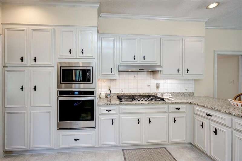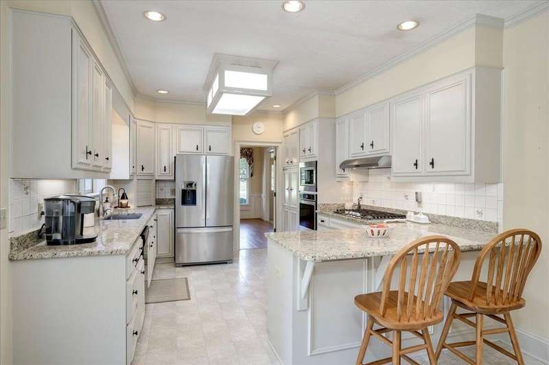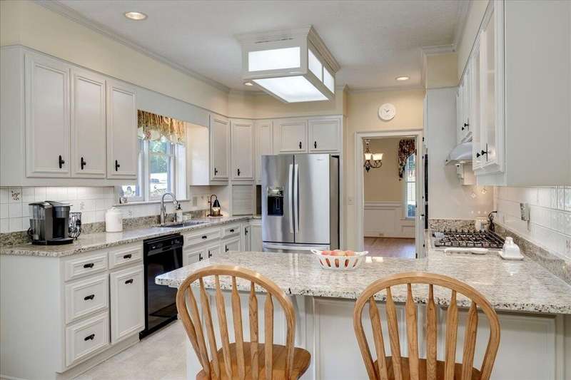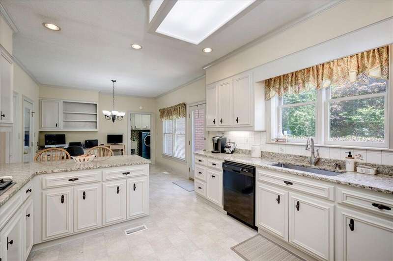 Welcome to this beautifully appointed 5-bedroom, 3.5-bathroom home located in the Northwood subdivision in the heart of Evans. Situated on a natural 0.5-acre lot, this spacious home offers both luxurious features and a practical layout - perfect for comfortable living and entertaining. Step inside from the rocking chair front porch into a welcoming foyer with ceramic tile floors and deep crown molding, flanked by a bright formal living room on the left and a formal dining room on the right. Both spaces feature hardwood flooring, large windows, and detailed trim work, providing charm and natural light. The main living area is anchored by a soaring family room with cathedral ceilings, twin skylights, and a gas fireplace surrounded by built-in shelves and cabinetry. Sliding glass doors lead to a tranquil screened porch, perfect for enjoying the outdoors in comfort. The kitchen is a chef's dream with granite countertops, abundant cabinetry, stainless steel appliances, including a 5-burner gas cooktop, built-in oven, built-in microwave, and French door refrigerator. A breakfast bar opens to a bright breakfast nook with French door access for a side entry and another access to the porch. A built-in desk station with shelves and cabinets adds a convenient home workspace. The main level features three bedrooms, including the Primary Suite with attached ensuite bath to include a walk-in closet, dual sinks, spa tub, and ceramic tile flooring. Two additional bedrooms share a full hall bath with dual vanities and ceramic tile. Moving upstairs you find yourself on the catwalk balcony overlooking the family room. The upper floor offers two more spacious bedrooms, a third full bathroom with dual sinks, and easy access to two walk-in, partially floored attic spaces with shelves for ample storage. The laundry room includes the washer and dryer, utility sink, access to the 2-car garage, and a convenient half bath. Enjoy outdoor living on the screened porch and adjoining deck, all overlooking the natural backyard - ideal for relaxing, entertaining, or grilling. Zoned for River Ridge Elementary, Riverside Middle, and Lakeside High. Excellent Masters Rental Potential. Walkable location near Evans Towne Center, Performing Arts Center, Library, dining, shopping, and so much more. Need more goodness? New roof 4/2025 and new windows 6/2025 This home offers the ease of main-level living with plenty of space for family or guests. Located in a well-established neighborhood with mature trees and close to top-rated schools and amenities, this home combines location, design, and function-all in one exceptional property.