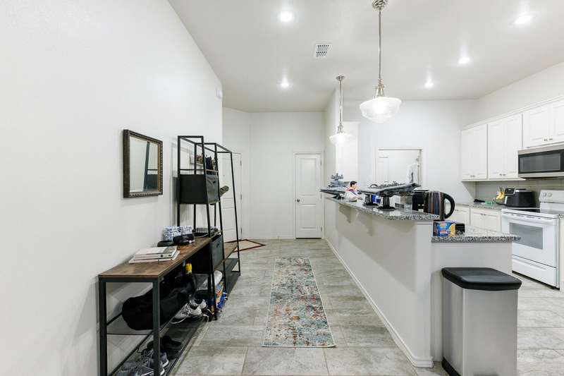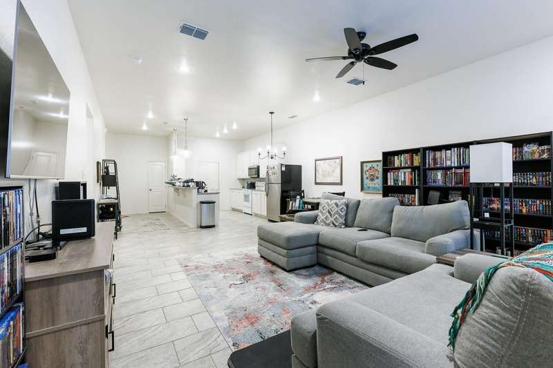 Very spacious Townhouse with 2 bedroom, 2 baths and a 2 car garage in Lincoln 16 subdivision, built in 2020 by Jordan Wheatley. Open concept. Kitchen has abundance of cabinet space with granite counter-tops & breakfast bar & pantry. The free standing range/oven is about 3 years old. Primary suite is isolated with two lavatory's, walk-in closet and a wonderful shower. The second bedroom is on the front of the house, the hall bath features a tub/shower with extra storage. The home has designer lighting & delta faucets. All the floors are tile except the bedrooms have carpet. Brick with metal fascia, xeriscape front yard with artificial turf. The small backyard is fenced, with a cement patio and no grass to upkeep. The townhome is perfect for anyone wanting to simplify their living.