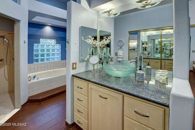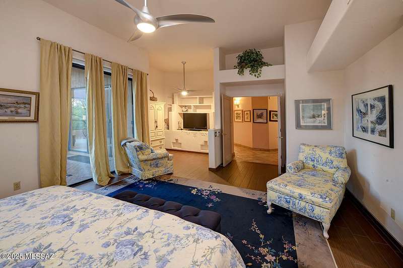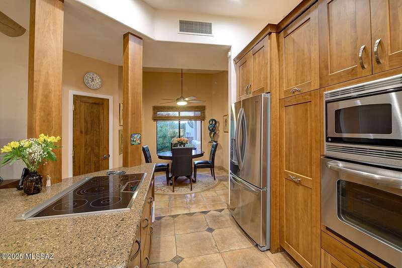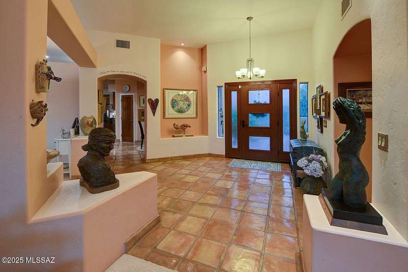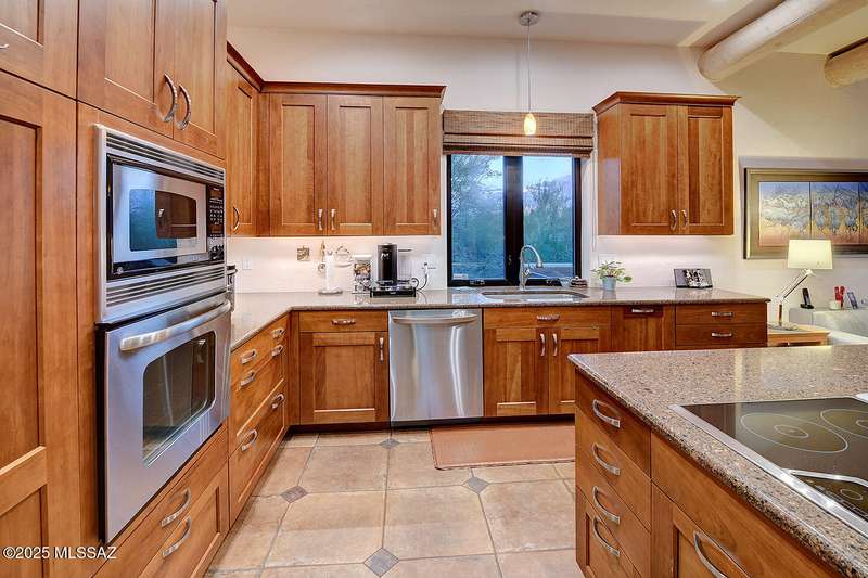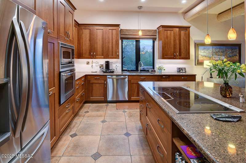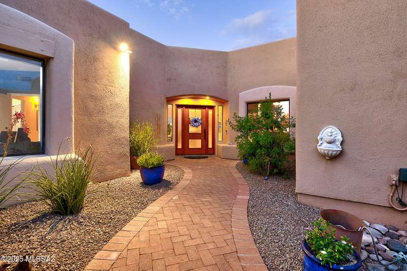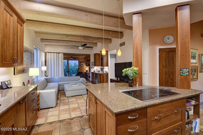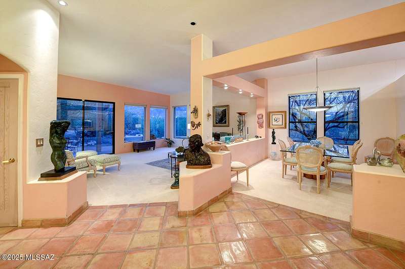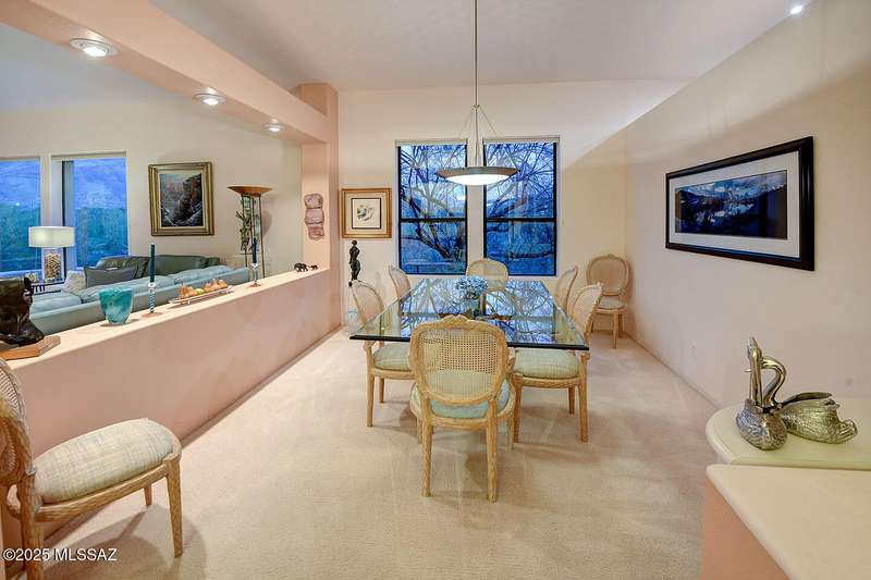 Perched high in sought-after Las Alturas, this stunning 3,226 sq. ft. residence offers refined desert living at its best. Enter through a charming, private courtyard and step into a home designed with both elegance and comfort in mind. The expansive living room boasts soaring 10-foot ceilings and walls of windows that flood the space with natural light, while the formal dining room provides the perfect setting for intimate gatherings. Newly recoated roof w/2 year warranty, newer HVAC system. The beautifully remodeled kitchen is the true heart of the home, featuring a generous center island, breakfast bar, and eat-in area, all opening to the spacious family room or separate den, ideal for entertaining.The split floor plan ensures privacy, with the primary suite offering a peaceful