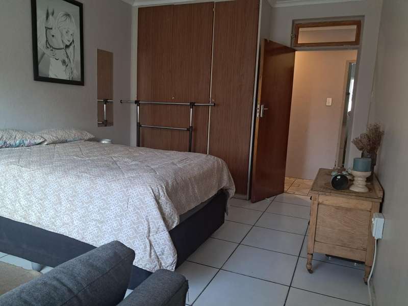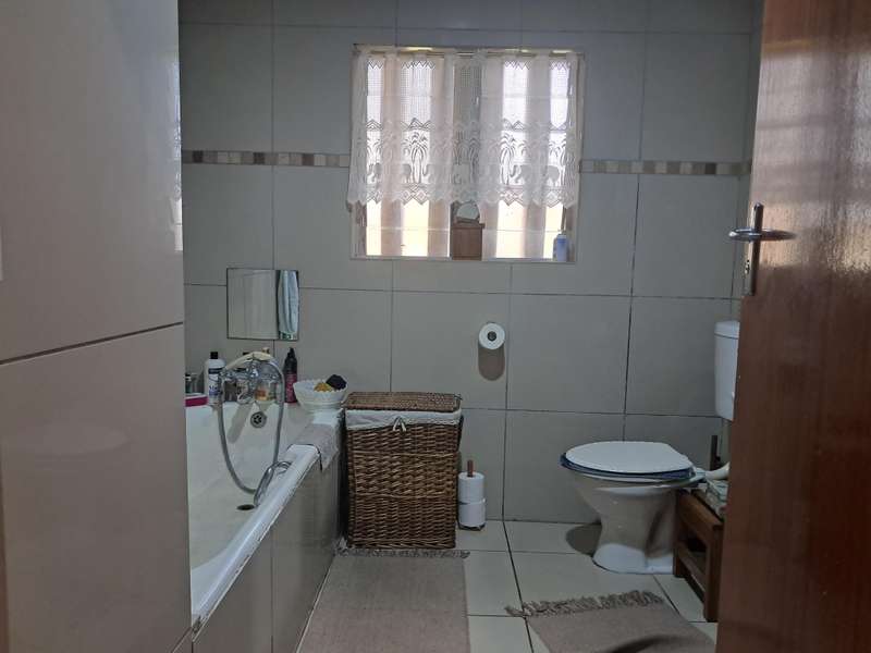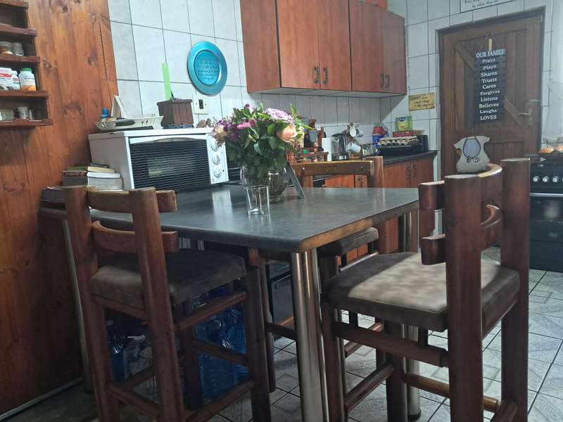This home consists of 4 spacious bedrooms with built in cupboards. Two bathrooms that is neatly tiled. An open plan lounge and dining room that is very spacious. The spacious kitchen is well laid out with all the extra goodies. A double garage and two carports is an extra plus. A one bedroom flatlet with kitchen and bathroom is part of this property. Extras include 2x2200 litre Jojo tanks with pumps. An additional swimming pool with a lapa and braai area, makes this a sought after property with a 1,420 square meter erf with a well kept garden. Please contact me to view.