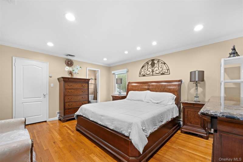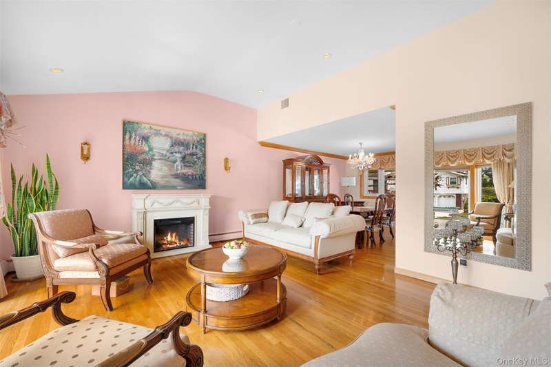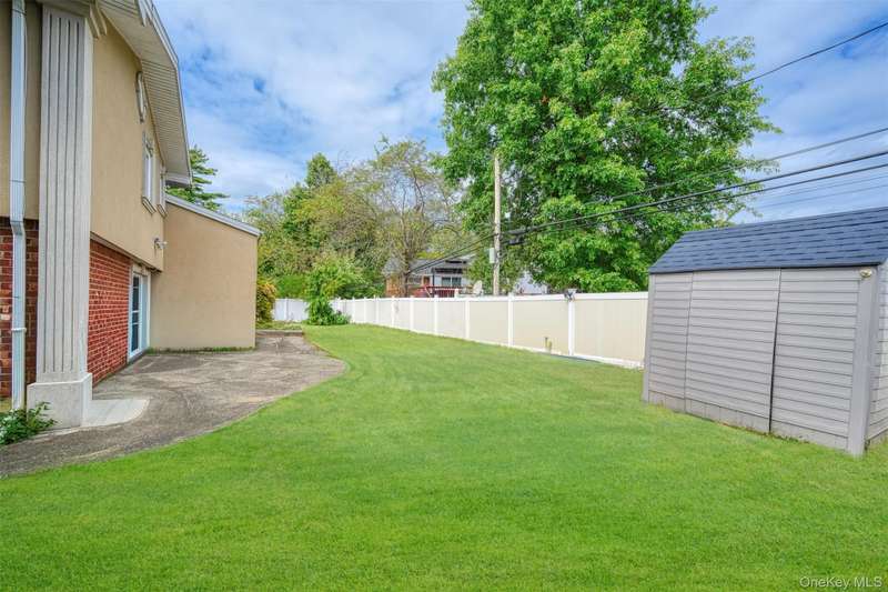 Spacious 4 bedroom 2.5 bath Split level with finished basement in The Jericho Gardens section of Westbury. Come see this large property with 100x100 lot and 2 car attached garage. It also features cathedral ceilings, formal dining room, primary bedroom with full bath and walk in closet 2 full baths, 1 half baths, new heating system, den with fire-place, big eat-in kitchen, formal dining room, hardwood floors and private yard.