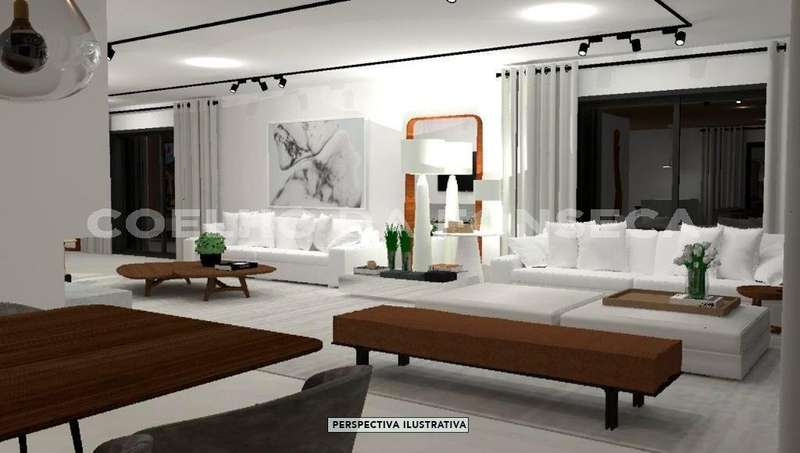 Casa com 4 suítes, sendo a máster com closet e banheiro Sr. e Sra., hall de distribuição, copa de apoio, espaço para rouparia, escritório, lavabo, sala de estar, sala de jantar, depósito, louçaria, copa, cozinha, despensa, lavanderia, suíte para funcionários, 3 vagas de garagem, piscina, área gourmet e academia.