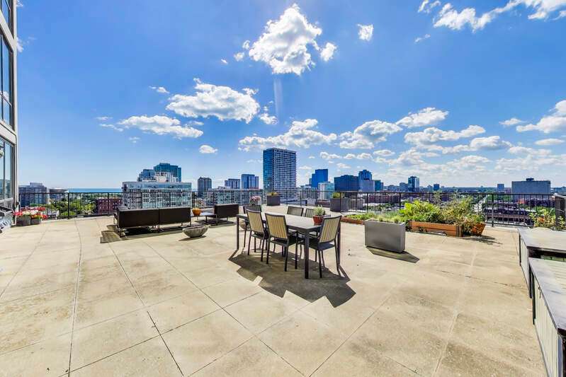 Rarely available southeast corner 2BD/2BA at Dearborn Tower! This bright and spacious home has extraordinary outdoor space, including a 43'x39' private terrace and a 13'x5.5' balcony with forever lake and skyline views. Interior highlights include hardwood floors, a chef's kitchen with honed granite countertops, upgraded cabinetry, professional appliances, dedicated bar with wine fridge and beer tap system with cooler. The oversized island seamlessly connects to the dining and living areas. The primary suite features a renovated spa bath with double vanity, large walk shower, and a professionally organized walk-in closet. The second bedroom offers direct access to the terrace along with its own updated spa-like bath. Additional features include in-unit laundry and abundant closet space. Full amenity building with 24/7 door staff, fitness center, sundeck, bike room, and extra storage. One PREMIER deeded garage space available for $35k. Steps from trendy restaurants, parks, the lakefront, Soldier field, Whole Foods, dog parks, CTA, and more.