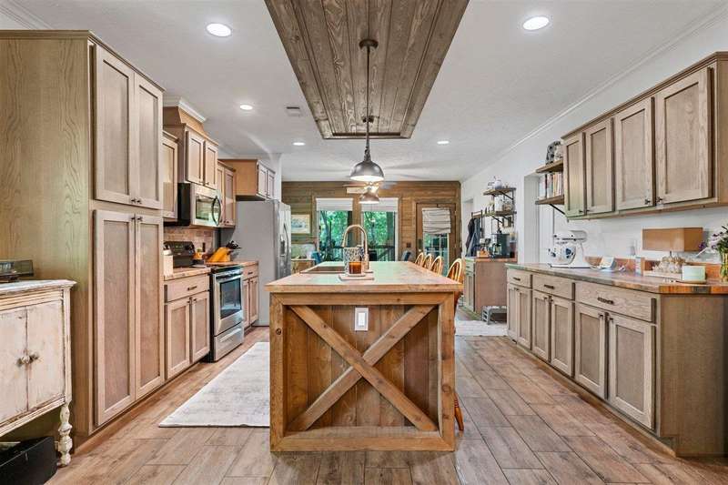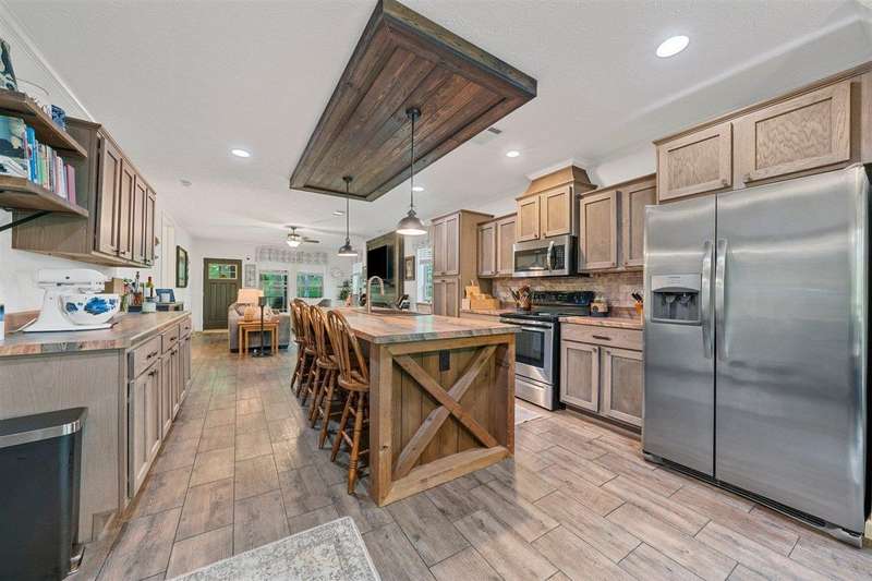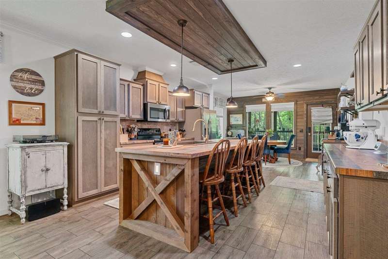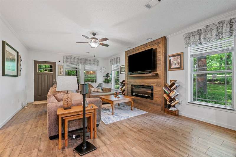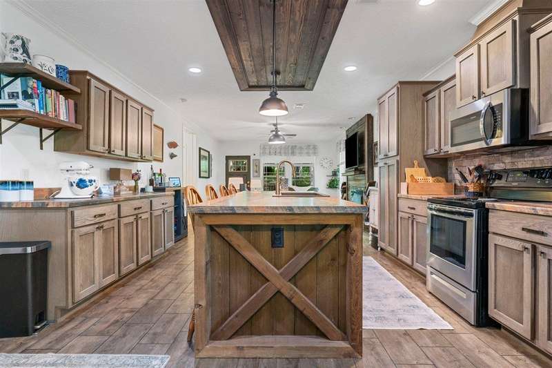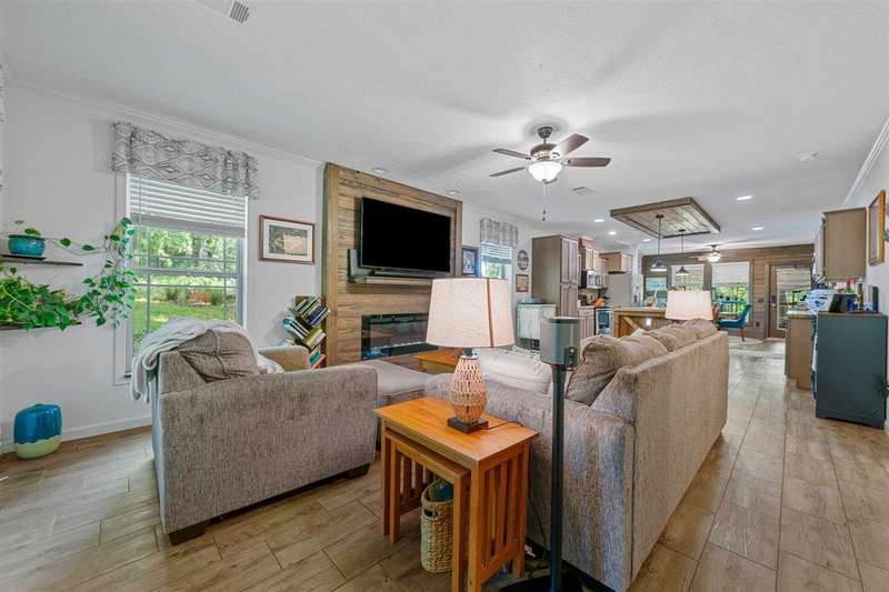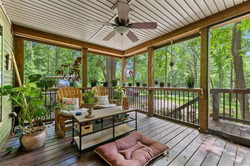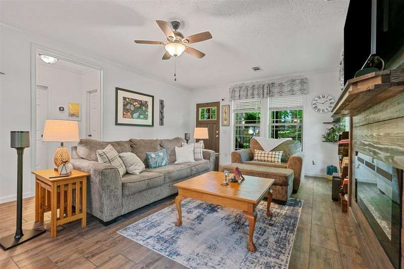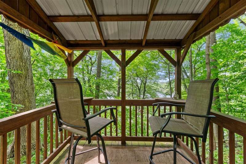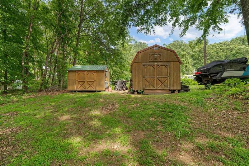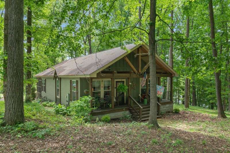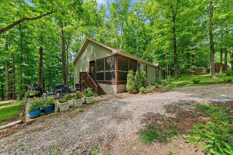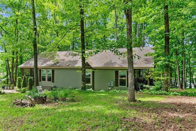Look at this rare find. 3 Bedroom 2 bath 4 year old home sitting on the lake with a view that many would love to have. Lakefront Location: The property sits directly on the lake stunning views. A screened-in porch, covered deck, gazebo, rock patio, and fire pit provide various options for relaxing and entertaining outdoors. The large open floor plan with a fireplace creates a welcoming and inviting central gathering area. The two additional outbuildings is great for storage. The property has four lots, providing ample space and potentially room for further development or expansion. This property presents a compelling combination of modern comfort and natural beauty, making it an attractive option for lake enthusiasts and those seeking a peaceful escape. Owners was approved for a dock but never got one so new owner can apply for one. Would be great for an AirB&B.