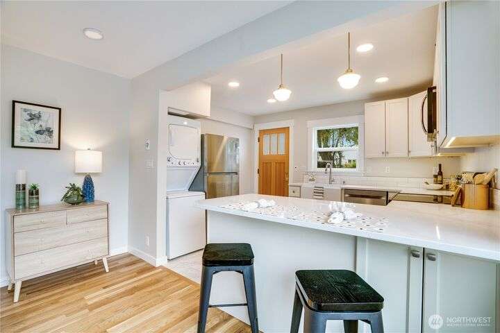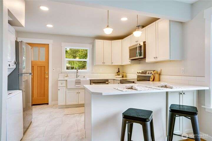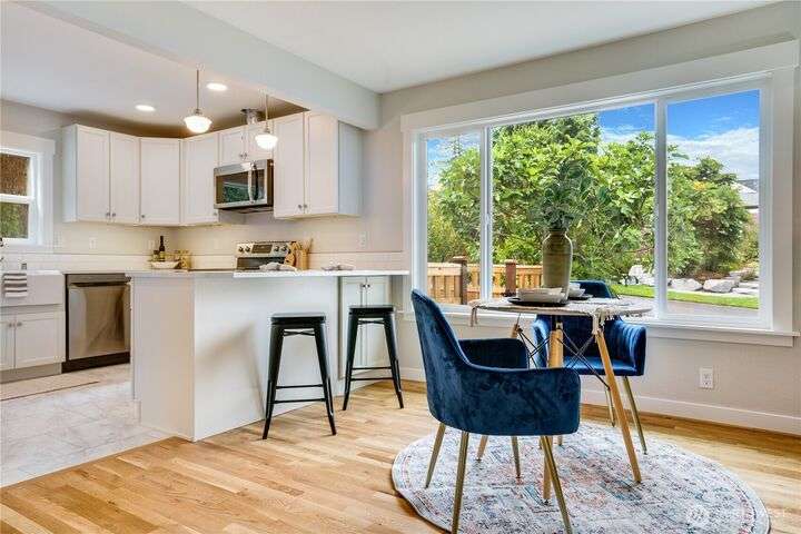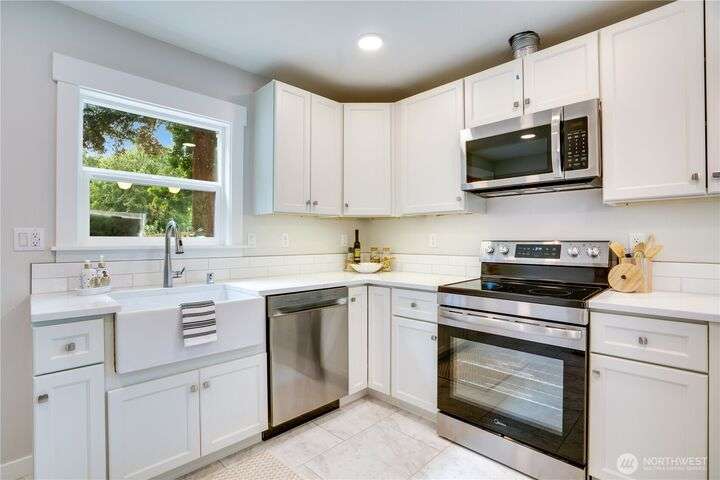 Tucked just two blocks from the vibrant Proctor District, this storybook cottage blends timeless charm with thoughtful updates. New siding, insulation, fresh paint, A/C, and oversized windows create a cozy, energy-efficient retreat filled with abundant natural light. The refreshed kitchen and baths offer modern style with a nod to classic design, while the single-level layout makes everyday living effortless. Step outside to enjoy a beautifully landscaped yard, complete with a flagstone patio and new fencing-perfect for morning coffee or evening gatherings. Need extra space? The 768 sq ft unfinished basement offers ideal storage. A rare blend of character, comfort, and convenience in one of Tacoma’s most beloved neighborhoods.