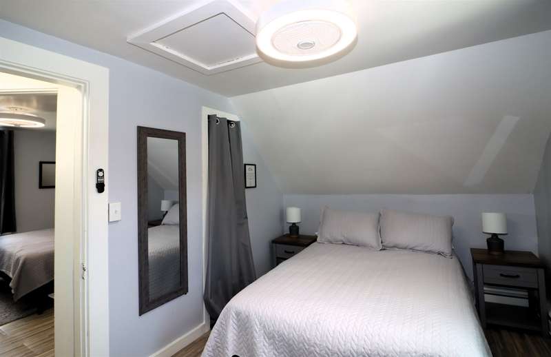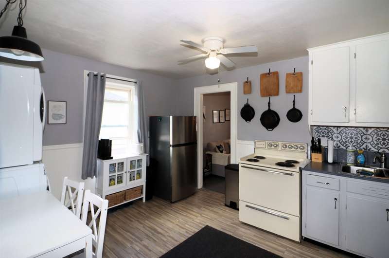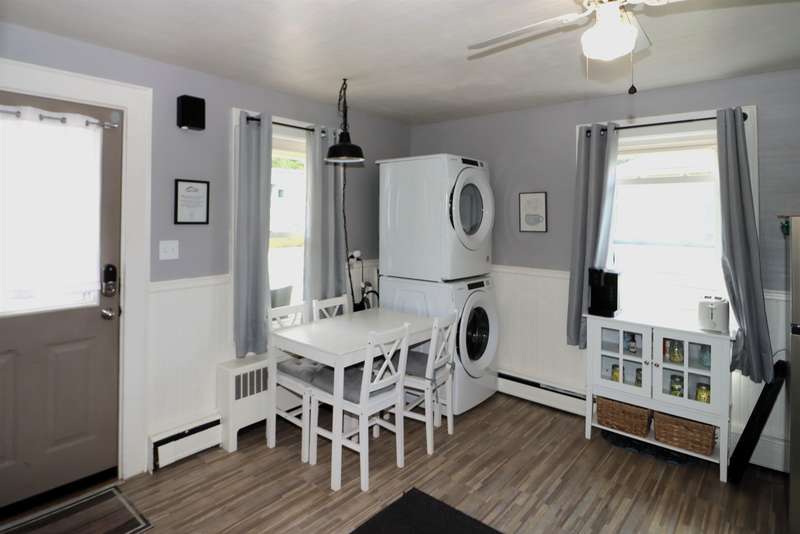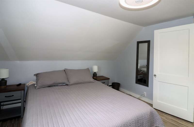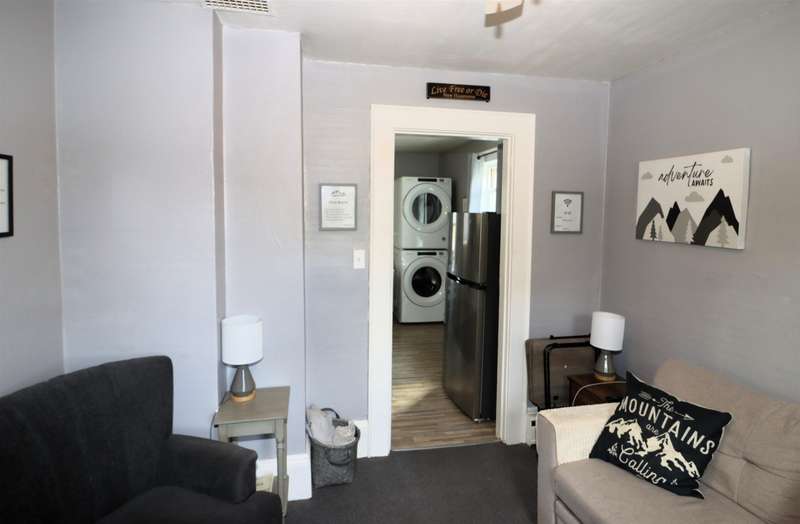 This well-maintained four-room, two-bedroom residence is situated on a level lot with a paved parking area. The first floor includes the kitchen, living room, and bathroom, all thoughtfully arranged for convenience. The property will be sold fully furnished, excluding personal items, and is equipped with an electric stove, refrigerator, washer, and dryer. Both bedrooms are located on the second floor, providing privacy and comfort. Additional features include a spacious back deck overlooking the yard and a shed for extra storage. This home presents an excellent opportunity as a starter property or as a secondary residence to enjoy the amenities of the North Country. Currently, the house is utilized as a rental property.