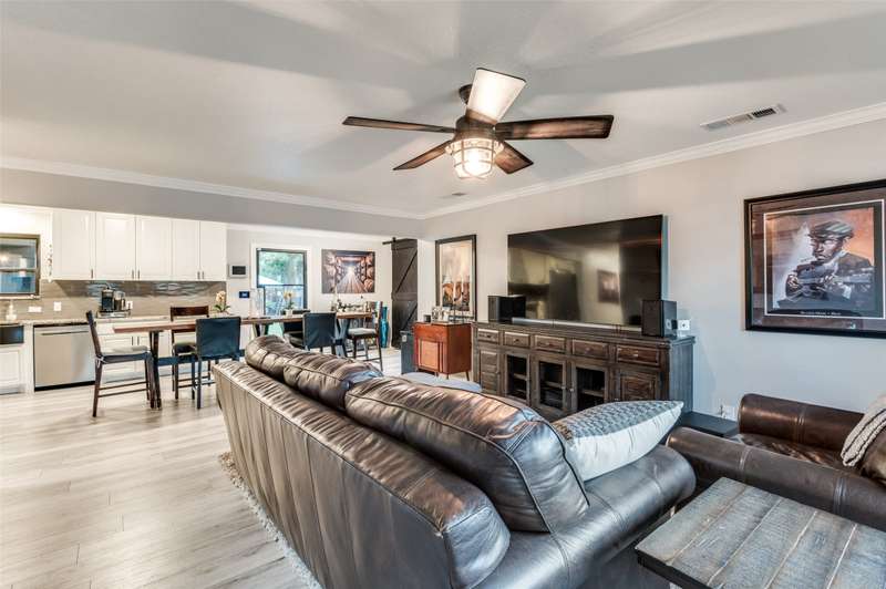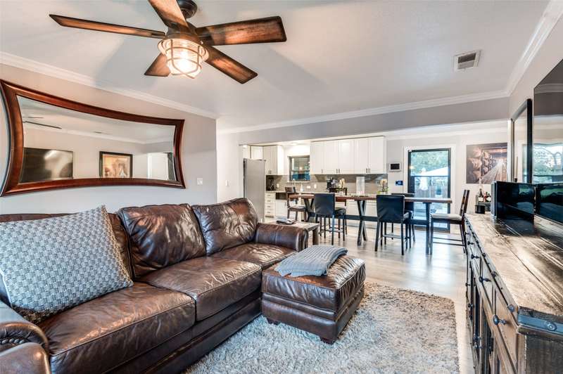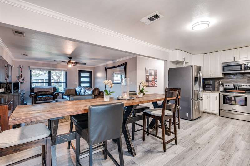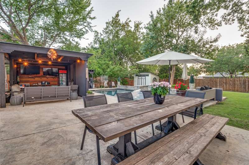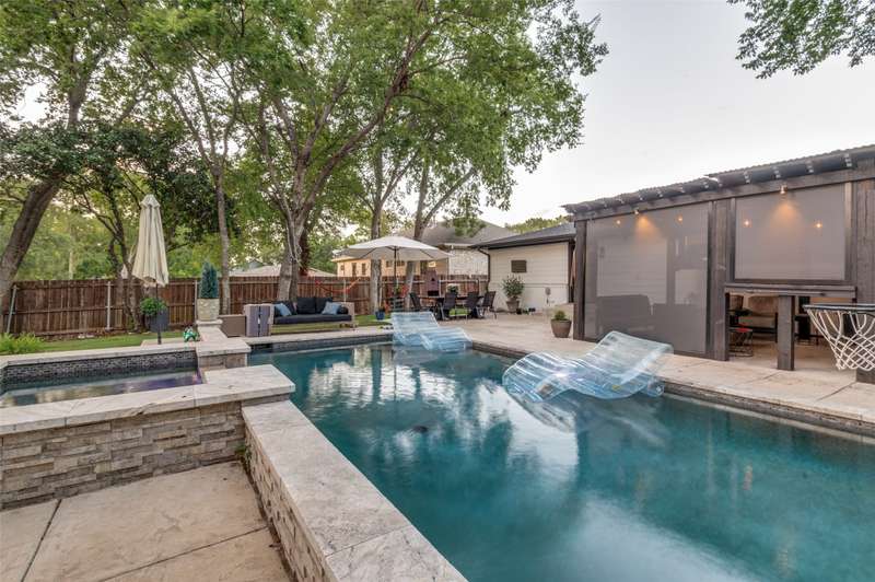 Pedestrian living at it's finest! This freshly updated Austin Stone 4 bedroom home features a luxurious and relaxing outdoor living space with a sterling waterfall pool and spa, cabana with sitting area, dining space and a very large grassy green lawn area. Located just a stone's throw away from Historic Downtown Grapevine which is lined with restaurants, galleries and shops makes these two worlds collide. Interiors showcase an open floor plan with views through the home, an updated and chic kitchen with stainless farm sink, ss appliances, white granite countertops and oversized subway tile backsplash and modernized ensuite primary bedroom. 4th bedroom can dual as a second living room or home office. See List of Updates from 2021. Highlights include: new roof, Lennox HVAC, replaced siding on the entire back wall of home, heavy Iron exterior doors, swimmingpool with heated spa andPentar Pool equipment, outdoor lighting. Conveniently located to Dallas Fort Worth International Airport, Downtown Grapevine, Highway 114 and a myriadof DFW's sports and entertainment arenas.