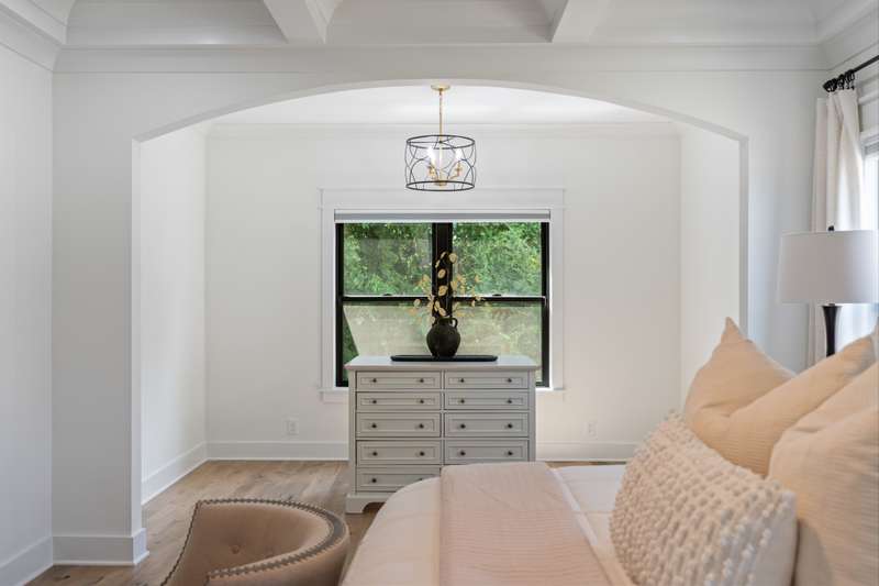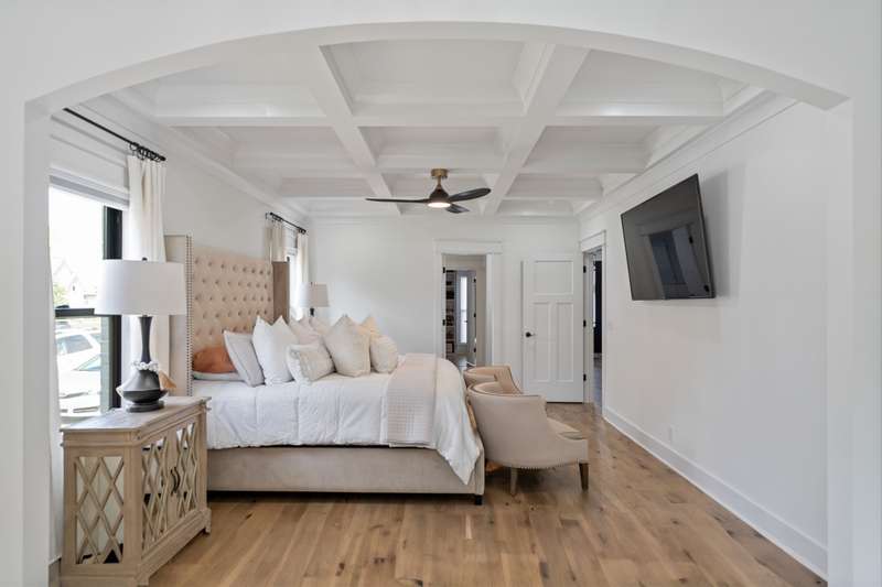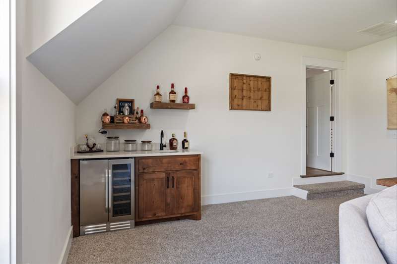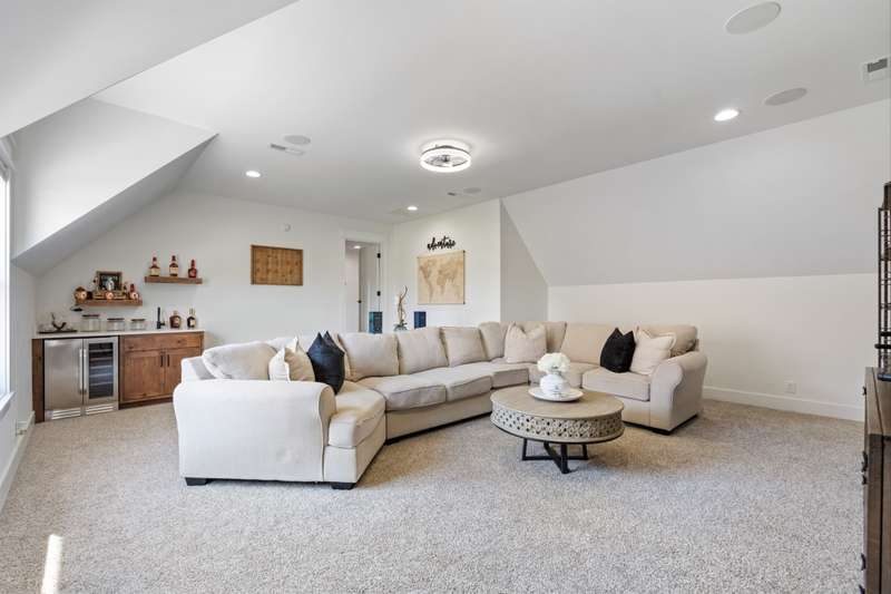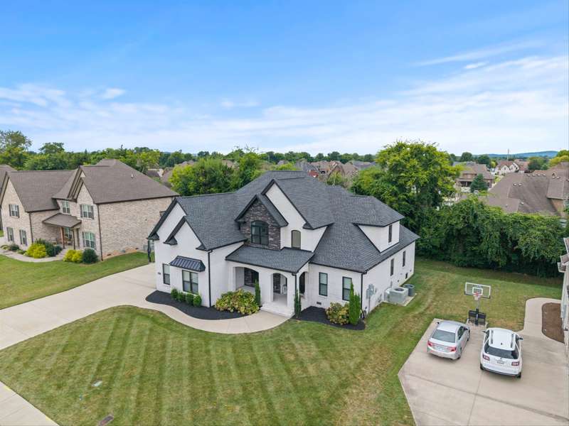Luxury living custom-built awaits you! 5 BR & 4 full BTH, it's a dream come true! Upon entering, you'll immediately notice the exquisite upgrades throughout the home. The spacious entryway leads to a formal dining room, complete with glass sliding doors & a hidden pocket door. This room can easily be transformed into an office or, as the current owner has done, a charming wine room. The living room, featuring a soaring 20' ceiling that flows seamlessly into the gourmet kitchen. This kitchen is truly the heart of the home. It's equipped with custom cabinetry, a walk-in pantry, a gas cooktop w/ a vented hood, a pot filler, a modern backsplash, a concrete farmhouse sink, a wine fridge, & a 10' island w/ ample storage. Adjacent to the kitchen is a cozy breakfast nook & a hearth room, highlighted by a gas fireplace that serves as a stunning focal point. This space is ideal for family gatherings during meal prep & casual dining. To the left of the hearth room, you'll find a full bathroom & a guest bedroom, tucked away for your guests' privacy. Conveniently located downstairs is the laundry room, complete with a sink for added ease. The primary suite is also on the main level, featuring a coffered ceilings & a sitting area that creates a luxurious & functional retreat for relaxation or reading, separate from the main sleeping area. The primary bathroom boasts a spa-like atmosphere with dual shower heads & a rainfall shower head. You'll also find a walk-in master closet with built-in shelves. As you head upstairs note the custom iron handrail & the beautiful hardwood floors throughout. A catwalk overlooks the living area & front entryway. Upstairs, there are 3 BR, 2 full BTH, & a bonus room equipped w/ surround sound, a sink & a wine fridge making it the perfect media room. The sliding glass doors downstairs will lead to the screened-in covered back patio complete w/ a gas fireplace & TV hookup. Extended concrete patio is ideal for additional seating or a grilling space.