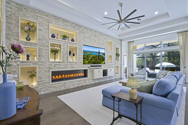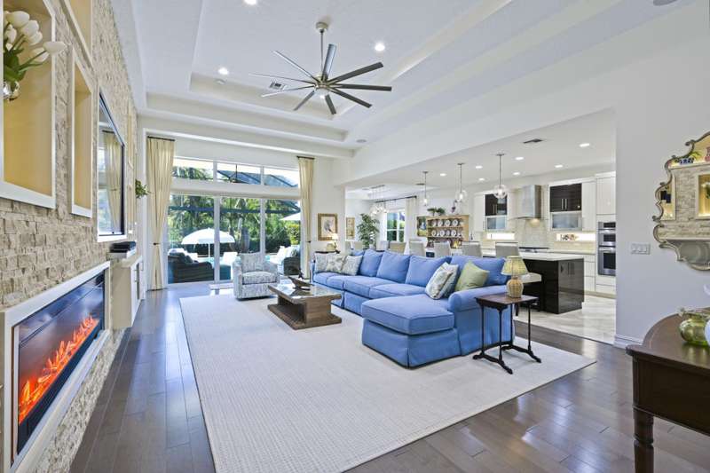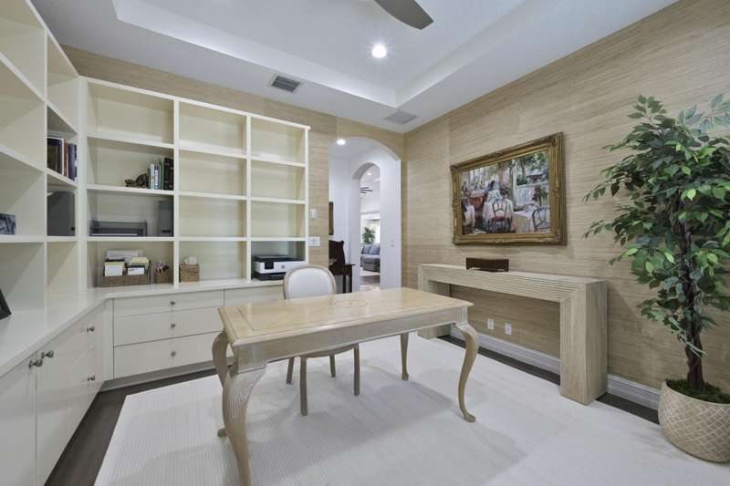 Welcome to this beautifully updated single-family residence in the desirable Jupiter Country Club. This elegant, single-story home boasts 3 bedrooms plus an office, an open floor plan with high ceilings, rich wood flooring throughout and marble floors in the foyer and kitchen.The gourmet kitchen is a chefs dream and well appointed with a Sub-Zero built-in refrigerator,a beverage cooler, Jenn Air gas stove cook top and oven. The Silestone countertops and custom cabinetry offers both style and functionality creating a seamless flow of storage solutions.Enjoy Florida living at its finest in your private backyard oasis which backs up to a serene preserve. The salt-chlorinated, heated pool with sun deck is fully screened, offering year-round enjoyment and total privacy.