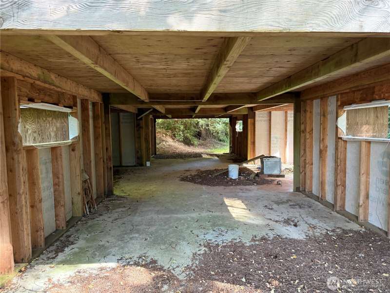 Oh, boy, this is an interesting property! Almost 47 beautiful acres on magical Harstine Island, with the start of a wonderful homesite. Sellers drilled a well & and installed a septic system in the mid-90's, and put an 1,802sf home structure on the property that is unfinished- no doors or windows, just a concrete foundation with walls and a stucco exterior, still in the studs inside. Two outbuildings - one complete (shop) & one unfinished. Power is nearby in the driveway, or consider going off-grid! The serenity here is amazing. The driveway meanders through heavily-timbered property, over a beautiful creek. You will feel like you are a million miles away from town...