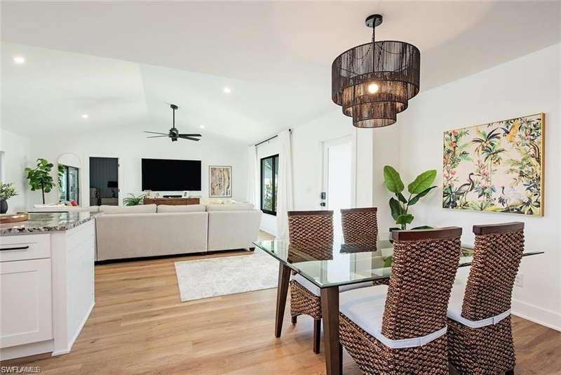 Welcome to your dream home on the magnificent Marco Island! This fully remodeled single-family residence offers unparalleled luxury and comfort, perfectly situated on a wide canal, ideal for boating enthusiasts, and boasting southern exposure with sunny pool/spa. Step inside to discover a stunning modern kitchen featuring beautiful stone countertops that blend style and functionality. The elegant wood flooring flows seamlessly throughout the home, highlighting the contemporary design and decor. The spacious living area provides a warm and inviting atmosphere, perfect for entertaining family and friends. Step outside to the gorgeous lanai seating area, where you can relax and take in the breathtaking wide canal views and intersecting waterway in the distance. Here, you can truly experience resort-style living at its finest, with the tranquil sounds of the waterway as your backdrop. Numerous recent upgrades including, but not limited to: new recessed lighting, new PGT double pane impact