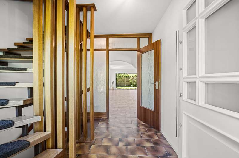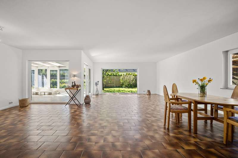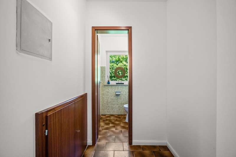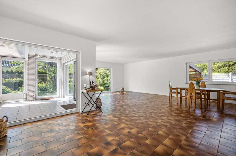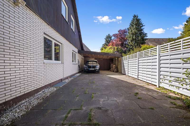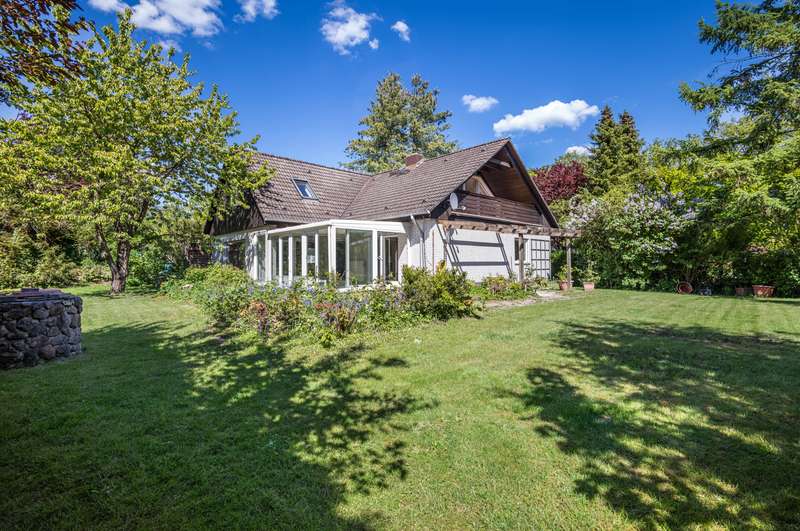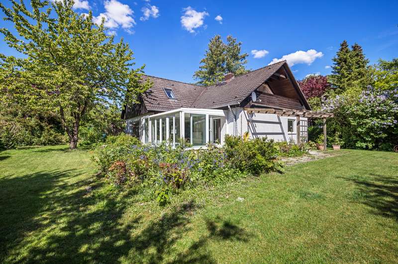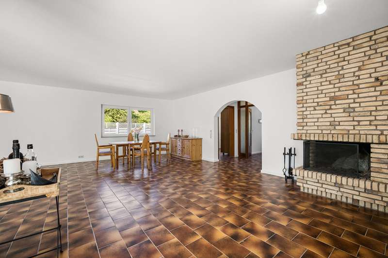 The spacious detached house for sale here was built in 1979 on a south-west facing plot in solid construction. The property offers you a high quality of life with plenty of space for your family in a cul-de-sac location. The property is completely enclosed so that it cannot be seen. A good building fabric, a special feeling of living and a very successful room layout await you. The approx. 179 m² of living space is spread over two levels with 5 full and 2 half rooms. As soon as you enter, you will be captivated by the comfort of the property. The inviting hallway is an immediate eye-catcher, offering a view into the representative living area and giving an idea of the spaciousness of the property. The impressive living and dining area with its panoramic windows and adjoining conservatory offers a special living flair. The fireplace creates a cozy feel-good atmosphere in the cold season. The kitchen is located at the front of the house and can be converted into an open-plan kitchen by changing the floor plan. Two bright and well-designed rooms, a full bathroom and a guest WC complete the first floor. The open wooden staircase takes you to the upper floor, which offers four further bright rooms. From the large room you have access to the south-facing loggia. A bedroom, two half rooms that can be used as children's rooms and a bright, modern bathroom with bathtub and shower complete the offer on the upper floor. You have the option of having a kitchen installed on the upper floor. The detached house has a full basement and, in addition to the utility room and boiler room as well as three further rooms, offers various individual uses, e.g. guest area, wine cellar and plenty of storage space. The offer is rounded off by a double carport. This well-kept detached house at the end of a residential street and a paddock is not to be missed - please contact us to arrange a viewing!