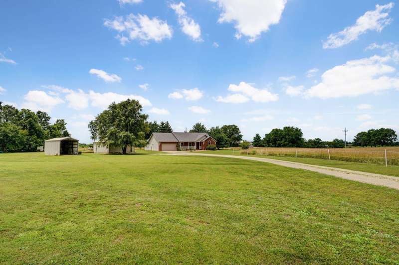 Amazing Views of Sunsets With Privacy on Nearly 6 Acres with a Shop, Storm Shelter & RV Storage! Welcome to your private retreat nestled just minutes from Mt. Vernon. This beautifully landscaped property offers stunning sunset views, peaceful seclusion, and a long drive that leads to a well-cared-for home. Inside you'll love the open floor plan, with just under 1800 sf & split bedrooms. The primary suite features a dual vanity, large walk-in closet & shower, with plenty of space to relax. The roof was replaced in 2017. Windows were replaced with high-quality Anderson windows throughout the home. In additon to the HVAC, the Hardy outdoor wood furnace can be used to heat the home, providing low utilites. 24x24 heated & cooled shop & a 12x24 RV carport are added bonuses. Acreage is great for horses or any hobby. Garden spot & storm shelter are located in the side yard. Enjoy your evenings on the spacious covered patio-the perfect spot to unwind and soak in the views of sunsets, birds & deer. Located in the award-winning Mt. Vernon school district. Easy access to Springfield or Joplin. Approximately 45 minutes to Table Rock Lake & about an hour to Branson or Stockton Lake.