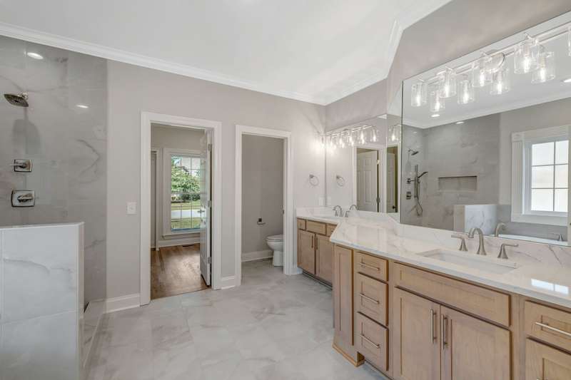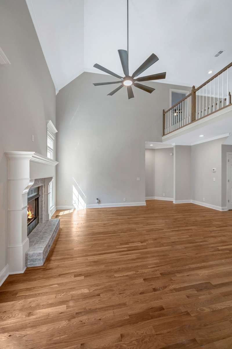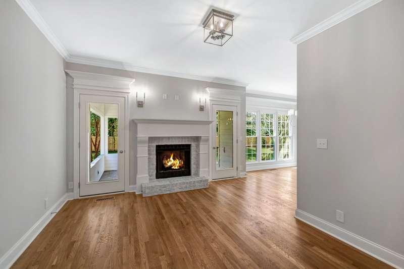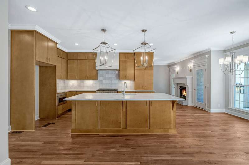 Just off the kitchen, you'll discover a gorgeous hearth room with a second fireplace, a perfect spot for relaxing evenings. A nearby hallway leads to a spacious laundry room, a custom designed pantry, a stylish half bath, and convenient garage entry.
