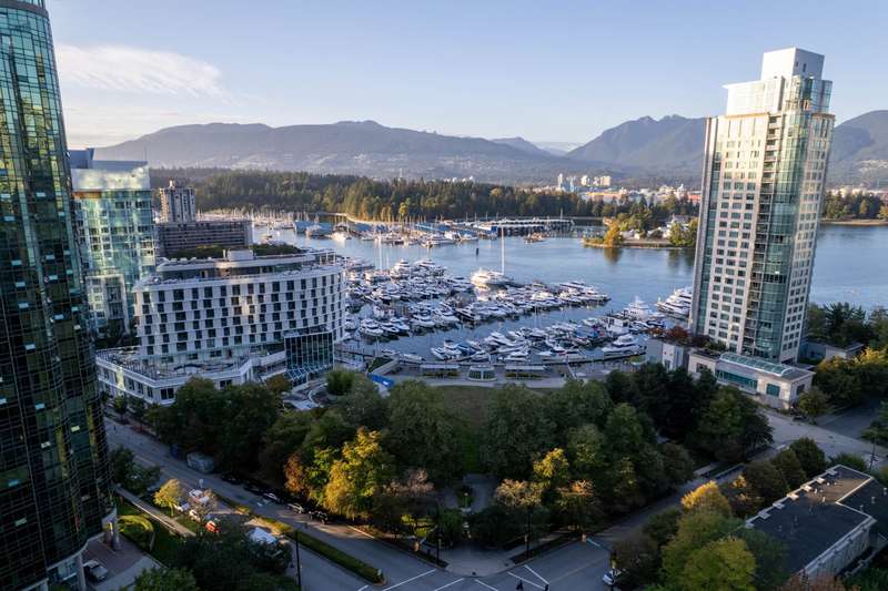 Welcome to this exquisite 3-bedroom, 2-bathroom plus den corner home at Pointe Claire, ideally located in prestigious Coal Harbour. Enjoy 180° water and city views from this bright southeast-facing suite, featuring 1,212 sq. ft. of well-designed space filled with natural light through floor-to-ceiling windows. The efficient layout offers spacious bedrooms, including a primary suite over 200 sq. ft., connected to a tranquil solarium—perfect for morning coffee with stunning views. Meticulously maintained and truly move-in ready—ideal as a home, investment, or an opportunity to renovate into your dream view residence. Pointe Claire is a quality-built, well-managed building, just steps from the seawall, Stanley Park, and top amenities.