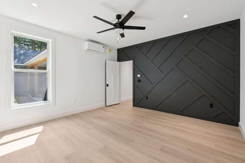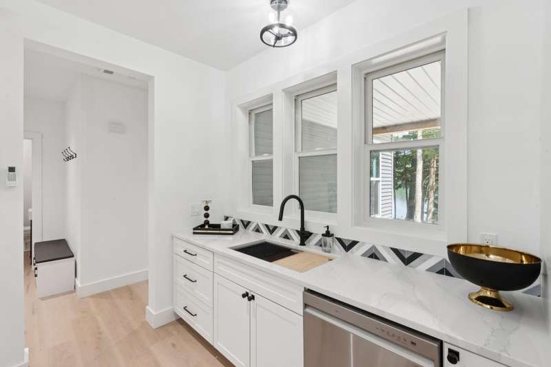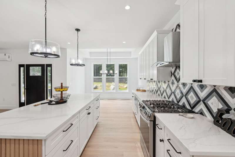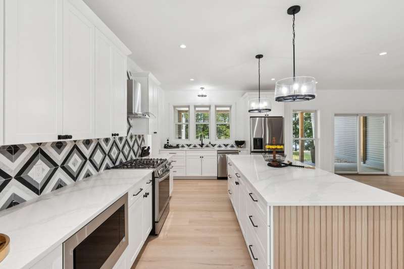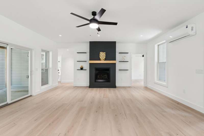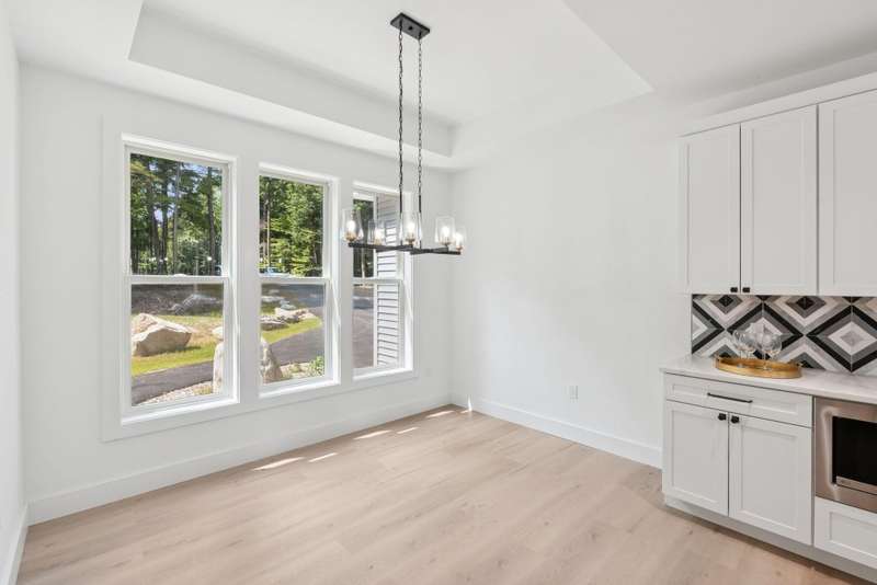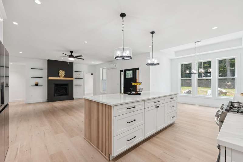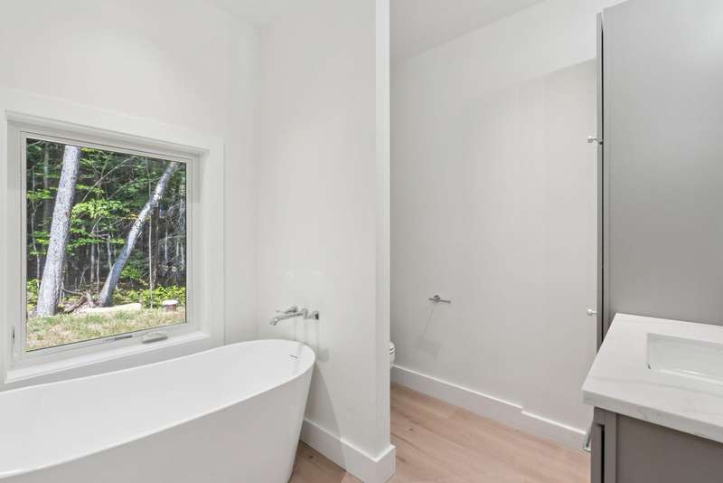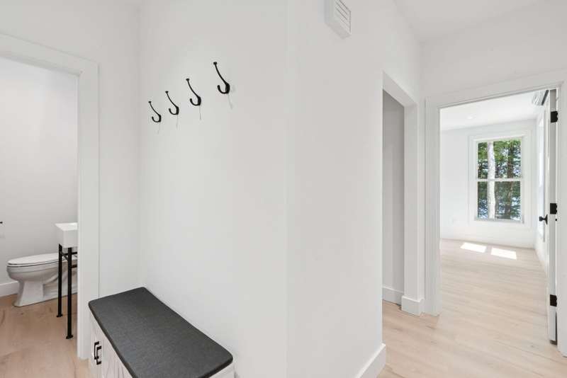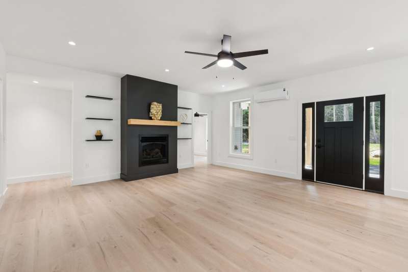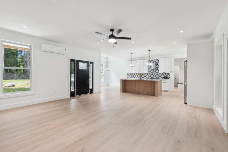 Welcome to Echo Lake! This brand new home has so much to love. This home has 4 bedrooms and 2.5 baths with a modern layout. The open kitchen, dining, and living room give you a spacious feel while focusing your attention toward the lake with all the large windows. The kitchen features quartz countertops, a beautiful island, and stone tile backsplash. The living room features a gas fireplace to warm the home on a cozy winter night. The primary bedroom faces the lake and has a gorgeous en suite bathroom. The bathroom features dual separate vanities, a glass and tile shower, large soaking tub next to a large window, and a private flush. This home is incredibly energy efficient with radiant heat (including the garage), heat pumps, and a heat recovery ventilation system to maintain perfect indoor air quality. The large sliding glass door leads to a covered patio and backyard space. Granite steps lead you to the flat entry into the lake. This 4 acre parcel is nearly completely flat making it extremely private with lots of usable space. The shoreline is a stabile mix of cobble, boulders, and gravel. The clean lake bottom is perfect for swimming. Echo lake is a deep glacial till lake that is surrounded by a hemlock lined shoreline, giving you that Maine feel that we all love! Properties with this space and privacy do not come along often. Only the best quality materials were used for the fit and finishes. This property checks all the boxes!
