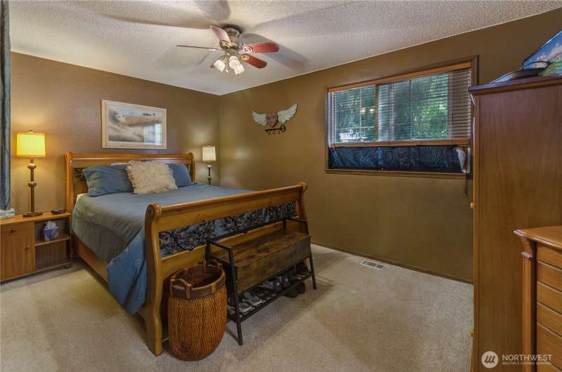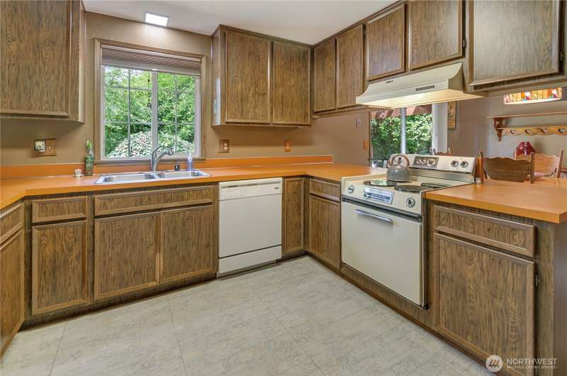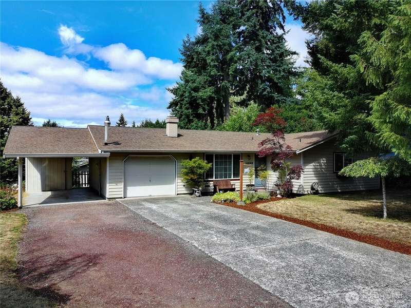 Discover the charm of Rhodeswood in this 1,194 sq ft rambler! Nestled on a spacious ¼-acre corner lot, this 3-bedroom, 1¾-bath home offers a blend of original character and modern touches, including a newer hot water tank and refrigerator. The 1978-built home features a single-car garage plus a 1993-added carport with a built-in shed perfect for lawn and garden tools. Enjoy a professionally landscaped, private backyard with rolling slopes and a flat, inviting front yard—ideal for quiet reflection or entertaining. Access to local schools via nearby trails and Hwy 410 makes commuting and errands a breeze. Just 5 minutes to shopping, this home is a perfect canvas to make your own in a mature, well-established community.