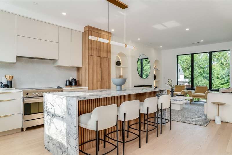 Stunning new construction 5 bed, 4 bath townhome with 2-car garage and exclusive yard space. This home offers a thoughtful layout with designer finishes throughout. The open-concept main level features a chef s kitchen with high-end appliances, striking custom cabinetry and built ins, a linear fireplace, plus a flexible bedroom/office. Upstairs, find 3 spacious bedrooms including a luxurious primary suite with walk-in closet and spa-like bath, along with laundry. The lower level provides versatile space for a gym, media room, or playroom. Built to feel like a single-family home, this property offers both style and function in a prime location ideally located near parks, the Charles River trail, Nonantum Village, and Watertown.