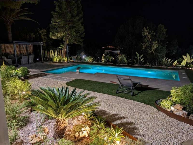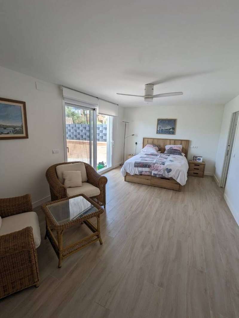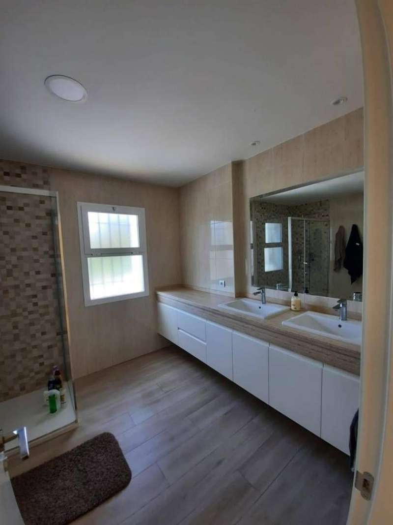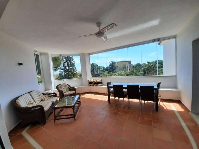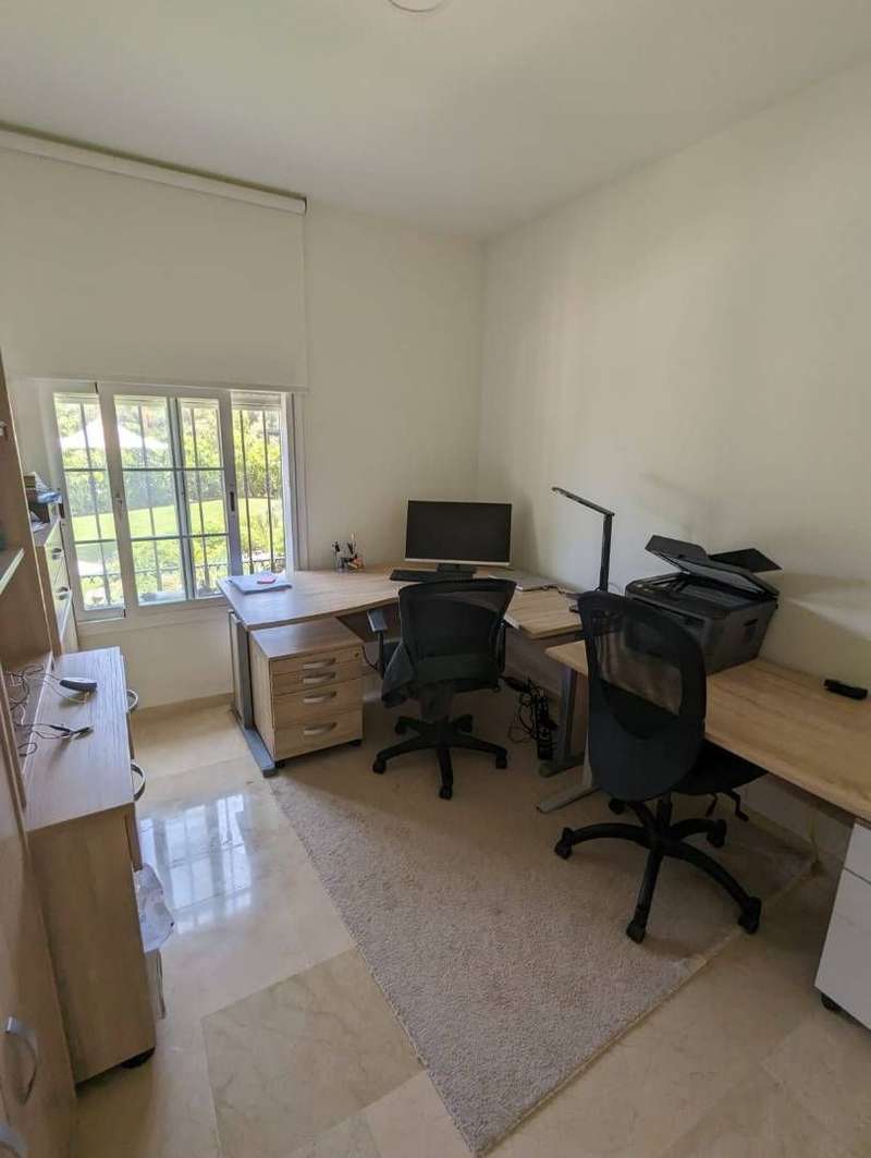 Located in a peaceful area of Elviria and surrounded by nature, this recently renovated villa offers a comfortable and luxurious living experience. With 5 bedrooms and the possibility to expand to 6, this property combines Mediterranean style with contemporary interiors. Upon entering, you will be greeted by a modern, fully equipped kitchen with a breakfast area and direct access to a charming terrace. The spacious open-plan living room features a cozy fireplace, while the open dining area extends to a beautiful enclosed terrace with panoramic and partial sea views. On the main floor, you will find three bedrooms, a shared bathroom, and a guest toilet. The sustainable garden level hosts two additional bedrooms, both with en-suite bathrooms and direct access to the garden from the terrace. The terrace also includes an elegant electric pergola, ideal for enjoying the outdoor space year-round. The meticulously designed and fully sustainable garden offers a heated pool, a gazebo with a