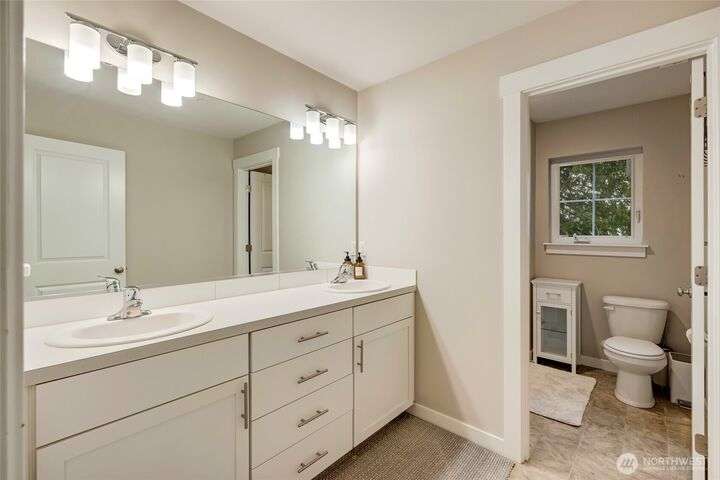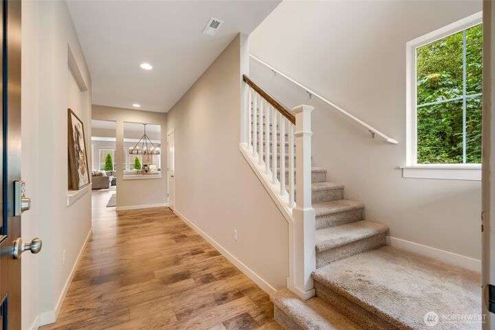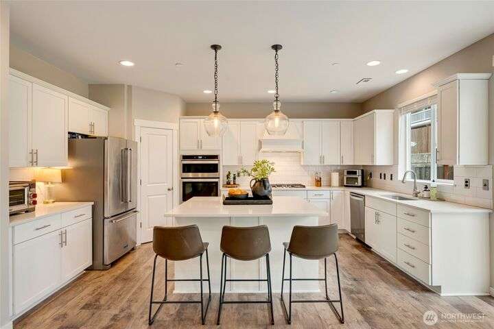 TUCKED AWAY, on a quiet cul-de-sac in a desirable DR Horton community {CREST VIEW} This 2020-built gem offers comfort, space, and modern updates on a generously sized lot with mature landscaping. Inside, enjoy fresh interior paint, an open-concept layout that flows seamlessly from the living area to the kitchen and dining space, and a spacious main floor flex room—perfect for guests or a home office. Upstairs, the private primary suite features new tile and glass tub/shower, adding a spa-like touch. The large, fenced backyard offers room to play, garden, or relax under the trees—rare in newer homes. Minutes to shopping, schools, parks, and I-5—this peaceful retreat is move-in ready! AWARD WINNING LAKE STEVENS SCHOOLS!!