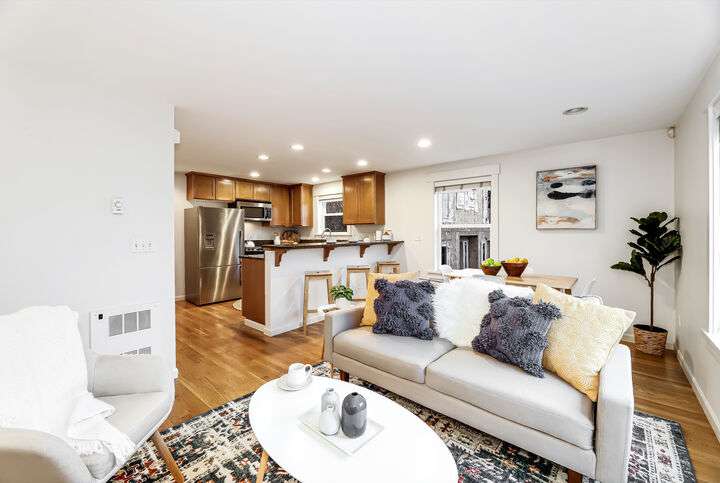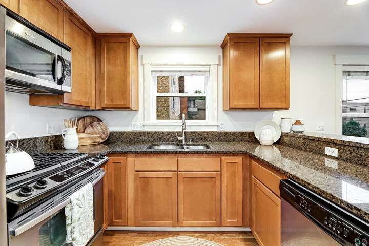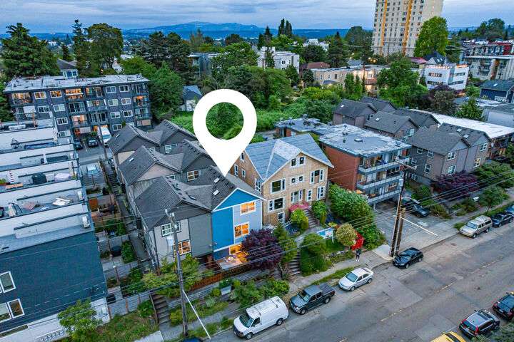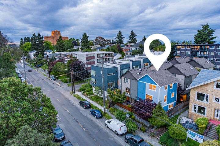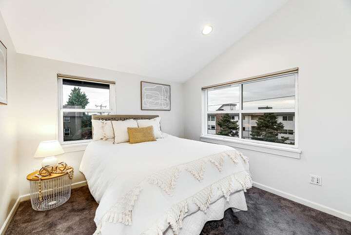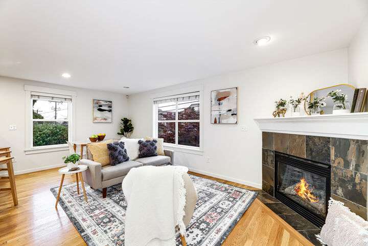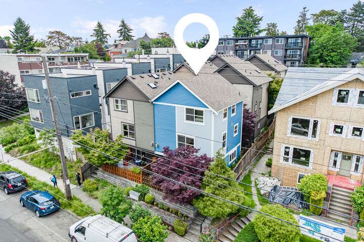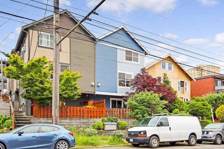Vibrant and exceptional turn-key townhome in the heart of North Beacon Hill! End unit perched high off street level with tons of natural sunlight on all floors with Sunset & water views to the west. Flexible options and a terrific floorplan; entry-level ensuite or WFH office & 2 generous-sized BDRMs on upper lvl. Real hardwood flooring on the main to accent a terrific kitchen & living space. Gas fireplace to stay cozy in the Fall. Enjoy sunsets & summer breeze on the fenced patio. A bevy of nearby amenities to enjoy: Light-Rail station, Jefferson Park + Golf, secret backroute to the ID or Sodo to catch a game, & best dining & recreation. Key access points to I-5, I-90, W Sea Bridge. Off-street dedicated parking. No HODs. A smart Investment!