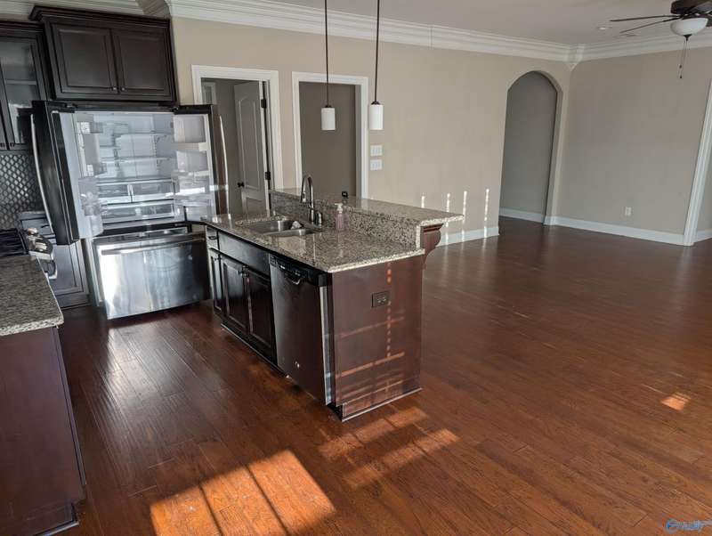 beautiful 3 bedroom 2 full bath home with hardwoods throughout, tile in wet areas, gas log fire place, trey ceiling open floor plan, stainless steel appliances covered back porch, home backs up to goldsmith shiffman school. community pool owners association
