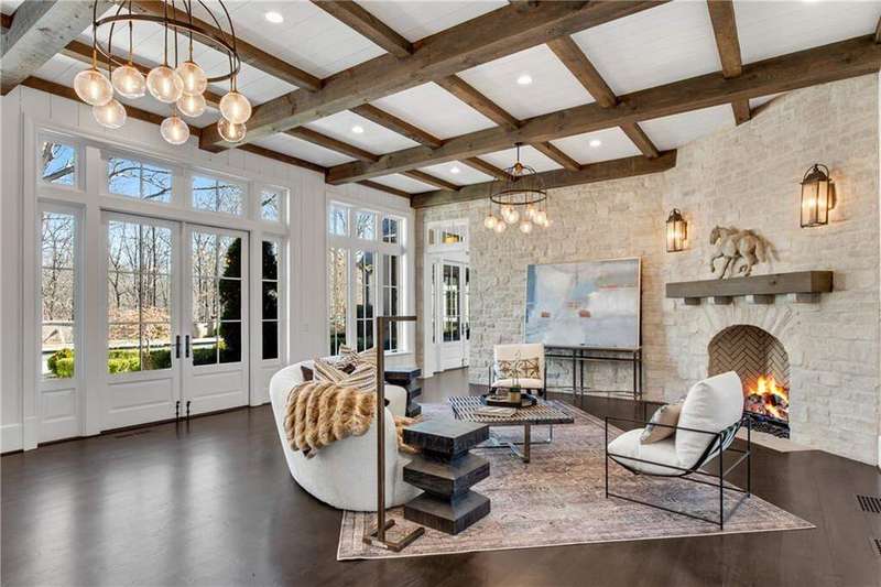 Exceptional property located on 4.58 acres within the exclusive gated community of Rivers Edge in Milton, this stunning all stone estate, adorned with a slate roof, was designed by T.S. Adams Studio. Radiating sophistication and timeless beauty, this stately residence features a commercial-grade elevator, connecting all three levels. Meticulous attention to detail is evident throughout, with the interior presenting a seamless fusion of stone, wood, and brick walls. The Venetian plaster adds a touch of timeless elegance, enhancing the overall atmosphere. The kitchen, a culinary masterpiece, showcases high-end appliances and a secondary butler's kitchen complete with a walk-in pantry. An inviting eating area opens to a panorama of windows framing the view of the pool. Continuing the seamless integration of indoor and outdoor living, the kitchen extends to the family room. French doors create an effortless transition, inviting guests to the pool area. On the main level, an office overlooking the pool and a library flank the path leading to the owner's suite which offers incredible views of the pool. The second floor adds to the opulence with 3 bedrooms and four full baths, providing ample space for family and guests. Convenience is paramount, with laundry rooms on both the main and second floors. The basement adds to the allure with a sauna, temperature-controlled wine room, safe room, family media room, billiard area, and daylight entry to a basketball court. A fenced backyard, coupled with the pool area extending to a side yard, creates an ideal space for various activities, solidifying the estate's commitment to providing a luxurious and versatile living experience. Ample parking is provided, with a porte cochere leading to a motor court and a 4-car garage. This estate is a combination of design, luxury, and functionality, offering a truly exceptional living experience in the prestigious Rivers Edge community.