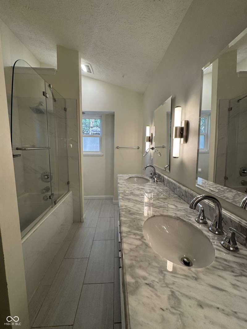 Discover your sanctuary in this inviting Ranch-style home located in a peaceful cul-de-sac within the desirable Trophy Club subdivision in Indianapolis. This cozy home offers single-level living with 2 bedrooms and 2 bathrooms, featuring an open, light-filled layout with cathedral ceilings and bay windows that create the perfect nook for relaxing. The location is ideal for tranquility, situated just moments from the serene Eagle Creek Reservoir, while its proximity to I-465 and I-74 ensures quick and easy access to local amenities. Step outside and enjoy the private outdoor oasis provided by your spacious, freshly painted deck and paver patio, which is shaded by mature trees and perfect for entertaining or relaxing.