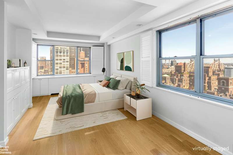 This luxurious Sutton Place Neighborhood is now offering a sprawling high floor, two bedrooms, two bath home. Located in the white glove, self-managed cooperative known as Plaza 400. These four and a half rooms (almost 1500 Sq. ft.) home abounds with light, city and river views. The ensuite bedrooms located at either side of the apartment offer privacy and tranquility. The flow is seamless, from the entrance foyer to the living room, dining room, kitchen. A wonderful home for entertaining or just watching the sun come up on your own balcony. Primary Suite features a newly renovated bath with walk in shower, custom dressing room and two oversized walk-in closets. The kitchen is also newly renovated with all high-end stainless Steele appliances. The building boasts some one-of-a-kind amenities such as The Skytop Club with sundecks and outdoor pool and lounge, modern fitness center, resident lounge and children's playroom. Valet garage with reduced fees for residents. The building is fully staffed, including 24-hour concierge/mail desk.
