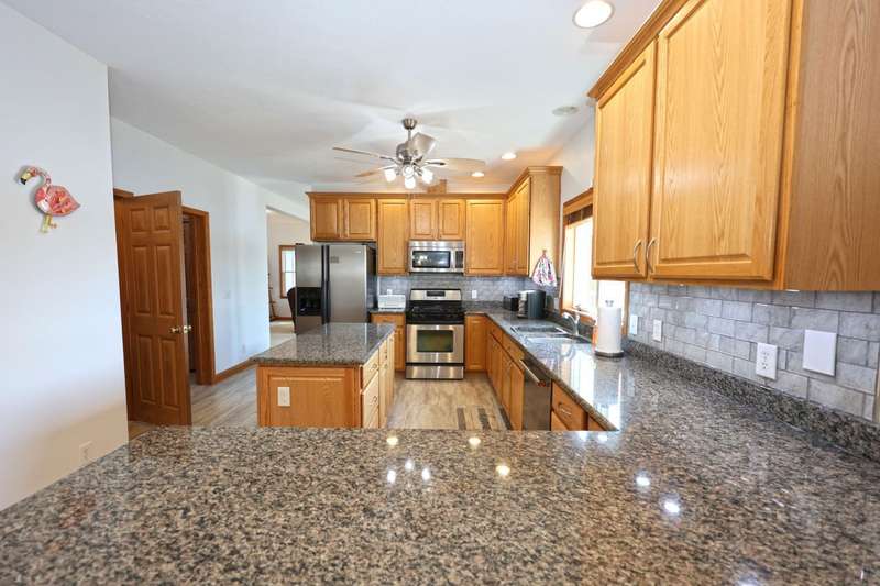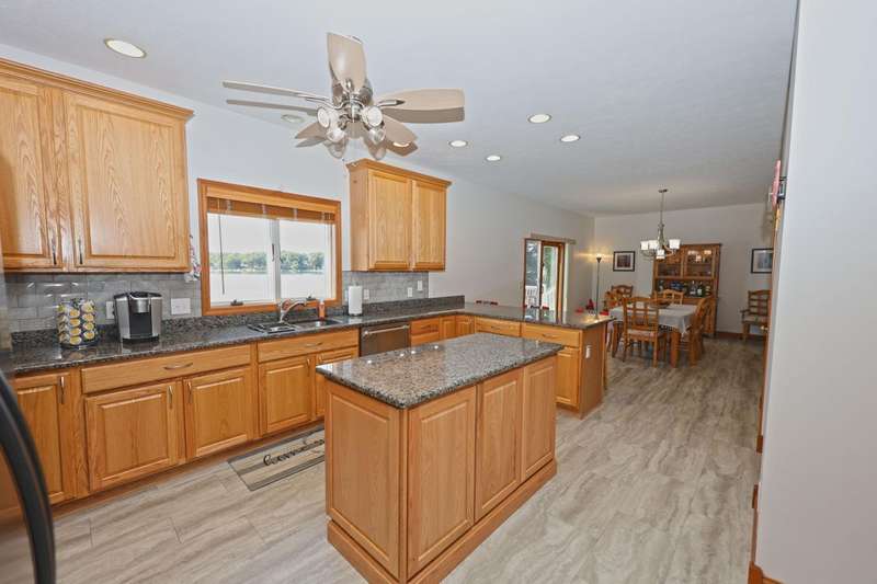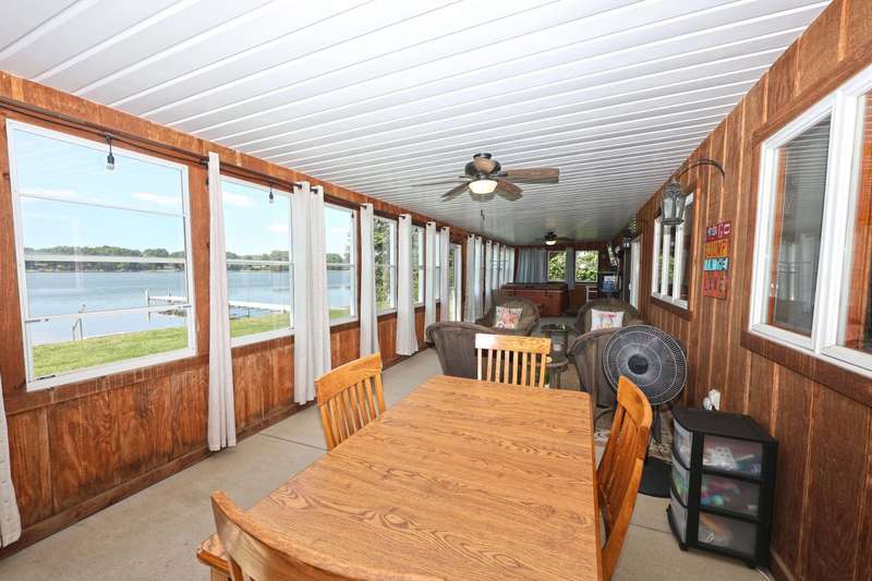 Enjoy breathtaking views of Keeler Lake from this spacious two-story home, which boasts 100 feet of pristine lake frontage. Three levels of fabulous living space. Five bedrooms, two primary suites, and four baths. The kitchen features a functional island and a breakfast bar, complemented by two pantries for ample storage. Throughout this home, youll find terrific storage solutions. Wonderful walkout access for seamless indoor-outdoor living. Entertain guests in the screened-in porch complete with a hot tub. Relax or host cookouts on the upper deck, perfect for gatherings with friends and family. The lower level is finished and includes a bar and pool table for recreation. Enjoy the beautiful lawn, sandy swimming area, and abundant space for all your water toys. The property also includes a two-car-attached garage and a lakeside toy shed. This home truly represents the very best of the lake living lifestyle.