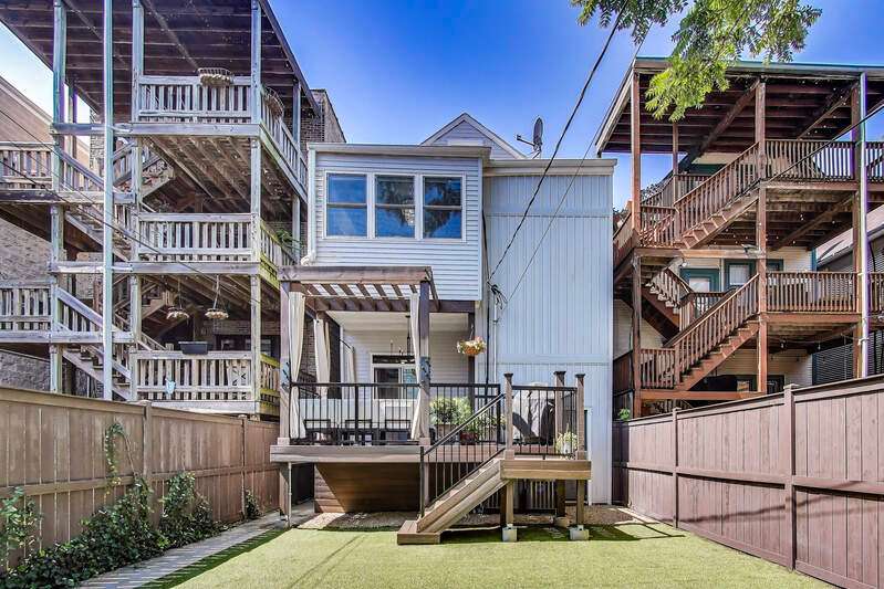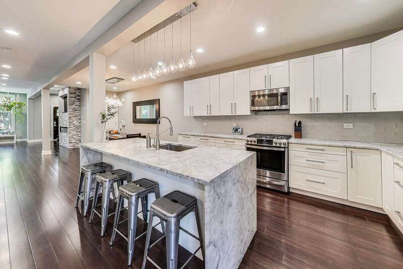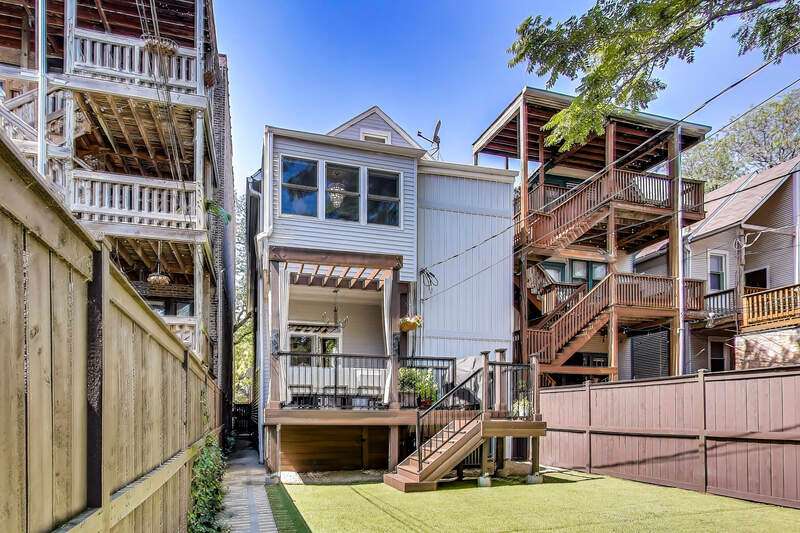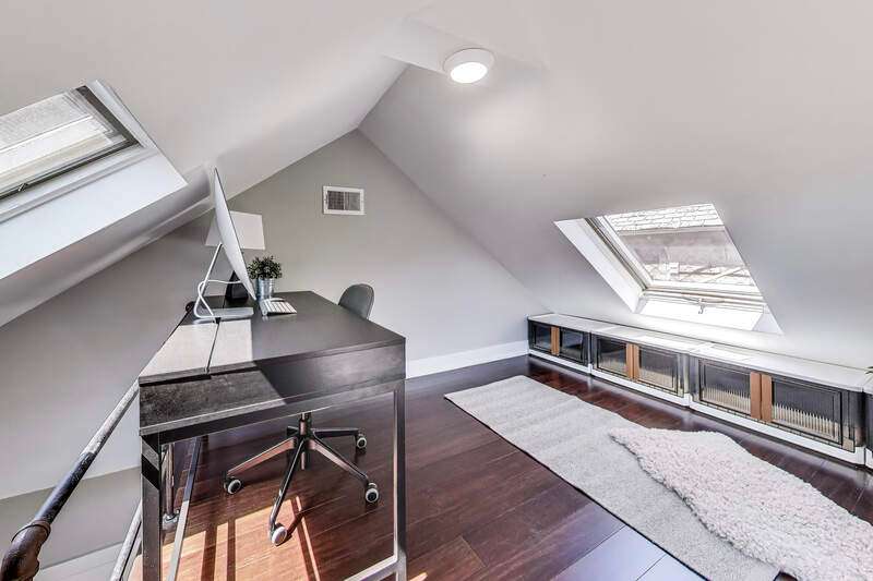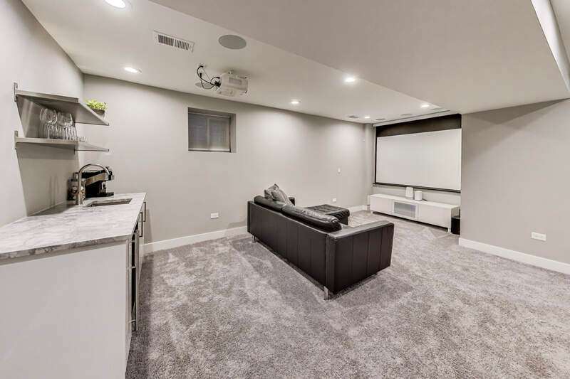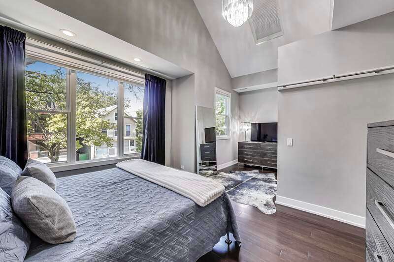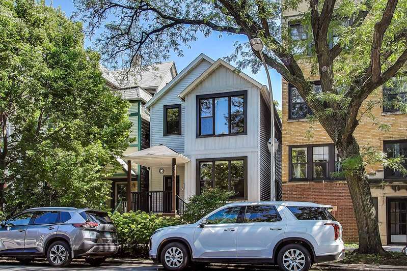 Lakeview - Prime location. This beautifully renovated single-family home on a full-size lot (25x125) with a 2-car garage offers a spacious, modern living environment with custom details and high-end finishes throughout. Thoughtfully redesigned, the home blends functionality with stylish design, ideal for both family living and work-from-home needs. Featuring 4 bedrooms plus a dedicated office, a separate custom loft with skylights, 3 full baths, and a first-floor powder room, this residence offers incredible versatility. Sunlight floods the open-concept main level, where you'll find a welcoming entry, spacious living room with a stunning gas-ventless stone fireplace, and gleaming wood floors. The Chef's kitchen is a showpiece, boasting stainless steel appliances, 42" white cabinetry, exquisite quartzite countertops, and a waterfall breakfast bar with seating for four. Upstairs, three generously sized bedrooms, a unique loft, and a bright, dedicated office with walls of windows provide abundant living options. An oversized laundry closet with full-size washer/dryer and two full baths completes this level. The primary suite impresses with vaulted ceilings, oversized windows, skylights, custom lighting, and a spa-inspired bath with gorgeous stonework, double vanities, and an oversized glass shower with dual shower heads. The lower level is built for entertaining, complete with a wet bar, beverage refrigerator, and projector with motorized screen - perfect for movie nights or game days. An additional bedroom, full bath, and ample storage complete the space. Outdoor living shines with a designer terrace featuring composite decking, stylish furnishings, outdoor draperies, and a mounted television with chandelier. The rear yard with artificial turf is ideal for both play and pets. Additional highlights include: Custom closets throughout, Dual-zoned heating and cooling with dampers, 2-car garage with electric car charger, Flood-prevention upgrades (sump pump, ejector pump, drain tiles) All of this in a prime Lakeview location, close to the CTA at Wellington and Belmont, shopping, dining, Southport Corridor, Wiggly Field Dog Park, Hamlin Park, and top-rated schools. This stunning home shows like a model and is in impeccable condition - truly move-in ready.