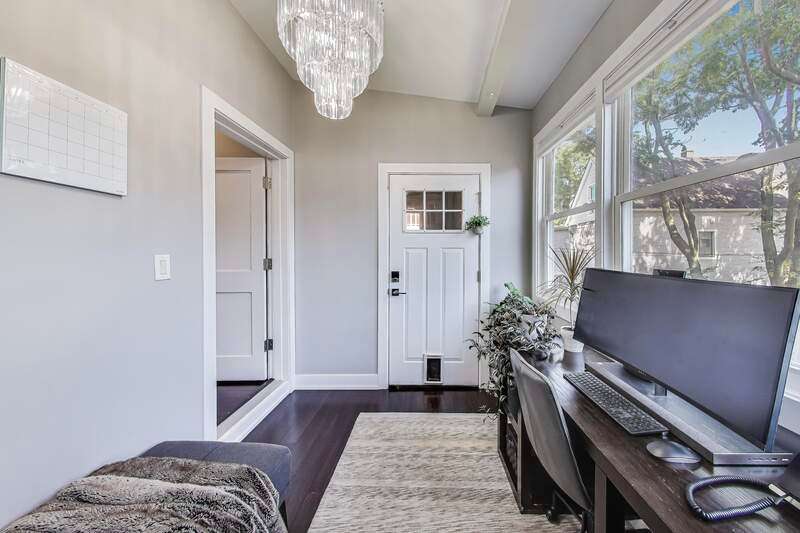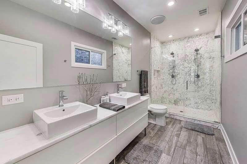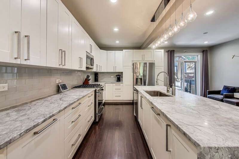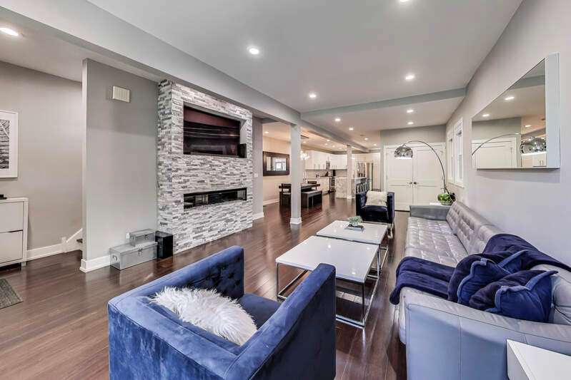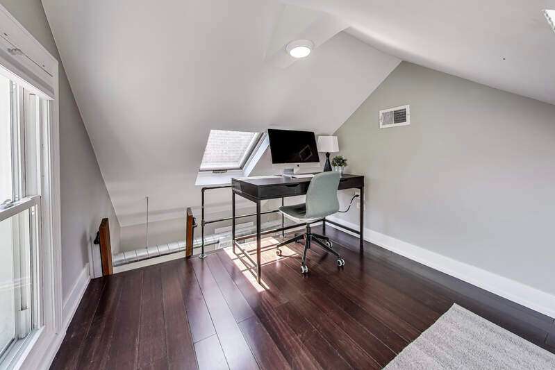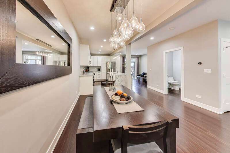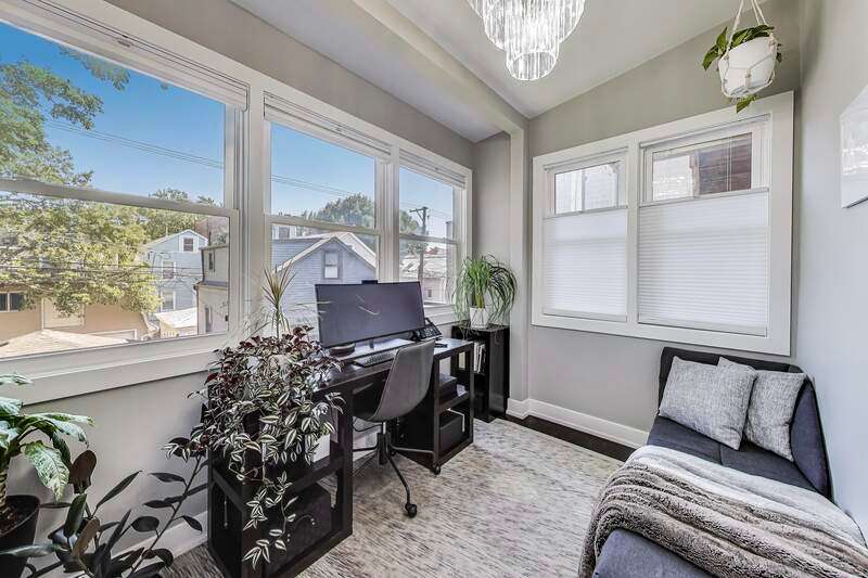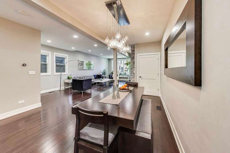 Lakeview - Prime location. This beautifully renovated single-family home on a full-size lot (25x125) with a 2-car garage offers a spacious, modern living environment with custom details and high-end finishes throughout. Thoughtfully redesigned, the home blends functionality with stylish design, ideal for both family living and work-from-home needs. Featuring 4 bedrooms plus a dedicated office, a separate custom loft with skylights, 3 full baths, and a first-floor powder room, this residence offers incredible versatility. Sunlight floods the open-concept main level, where you'll find a welcoming entry, spacious living room with a stunning gas-ventless stone fireplace, and gleaming wood floors. The Chef's kitchen is a showpiece, boasting stainless steel appliances, 42" white cabinetry, exquisite quartzite countertops, and a waterfall breakfast bar with seating for four. Upstairs, three generously sized bedrooms, a unique loft, and a bright, dedicated office with walls of windows provide abundant living options. An oversized laundry closet with full-size washer/dryer and two full baths completes this level. The primary suite impresses with vaulted ceilings, oversized windows, skylights, custom lighting, and a spa-inspired bath with gorgeous stonework, double vanities, and an oversized glass shower with dual shower heads. The lower level is built for entertaining, complete with a wet bar, beverage refrigerator, and projector with motorized screen - perfect for movie nights or game days. An additional bedroom, full bath, and ample storage complete the space. Outdoor living shines with a designer terrace featuring composite decking, stylish furnishings, outdoor draperies, and a mounted television with chandelier. The rear yard with artificial turf is ideal for both play and pets. Additional highlights include: Custom closets throughout, Dual-zoned heating and cooling with dampers, 2-car garage with electric car charger, Flood-prevention upgrades (sump pump, ejector pump, drain tiles) All of this in a prime Lakeview location, close to the CTA at Wellington and Belmont, shopping, dining, Southport Corridor, Wiggly Field Dog Park, Hamlin Park, and top-rated schools. This stunning home shows like a model and is in impeccable condition - truly move-in ready.